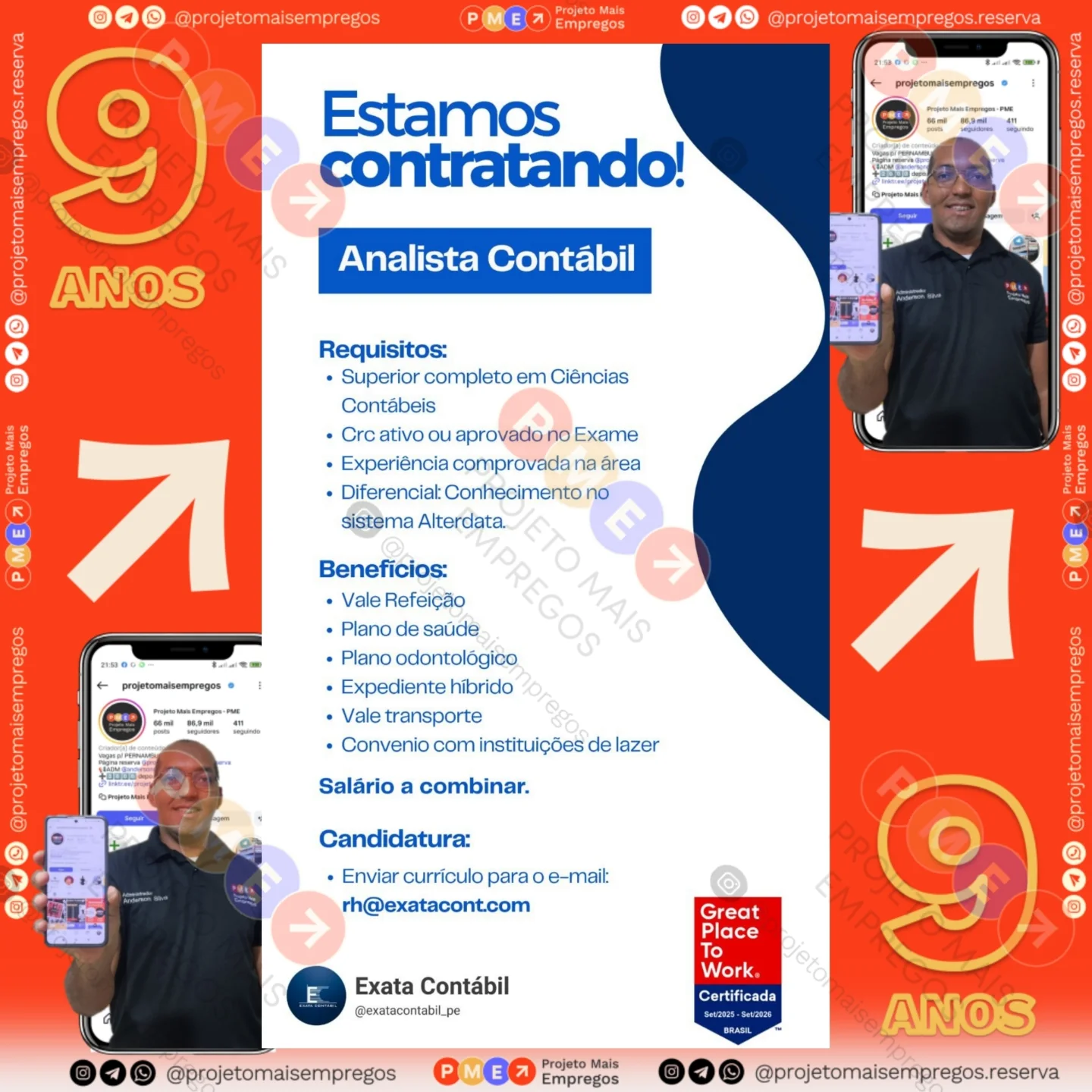 As informações sobre a vaga de emprego, como salário, remuneração, benefícios, requisitos, local de trabalho, forma de candidatura (e-mail ou whatsapp para enviar seu currículo) etc., estarão na imagem acima, caso estejam disponíveis.