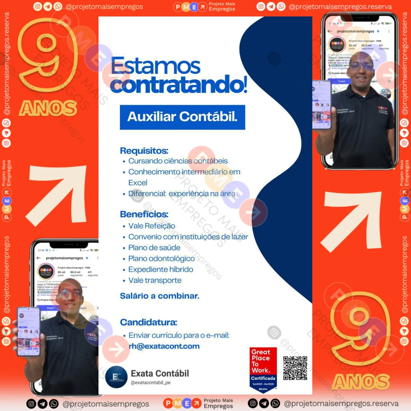 As informações sobre a vaga de emprego, como salário, remuneração, benefícios, requisitos, local de trabalho, forma de candidatura (e-mail ou whatsapp para enviar seu currículo) etc., estarão na imagem acima, caso estejam disponíveis.