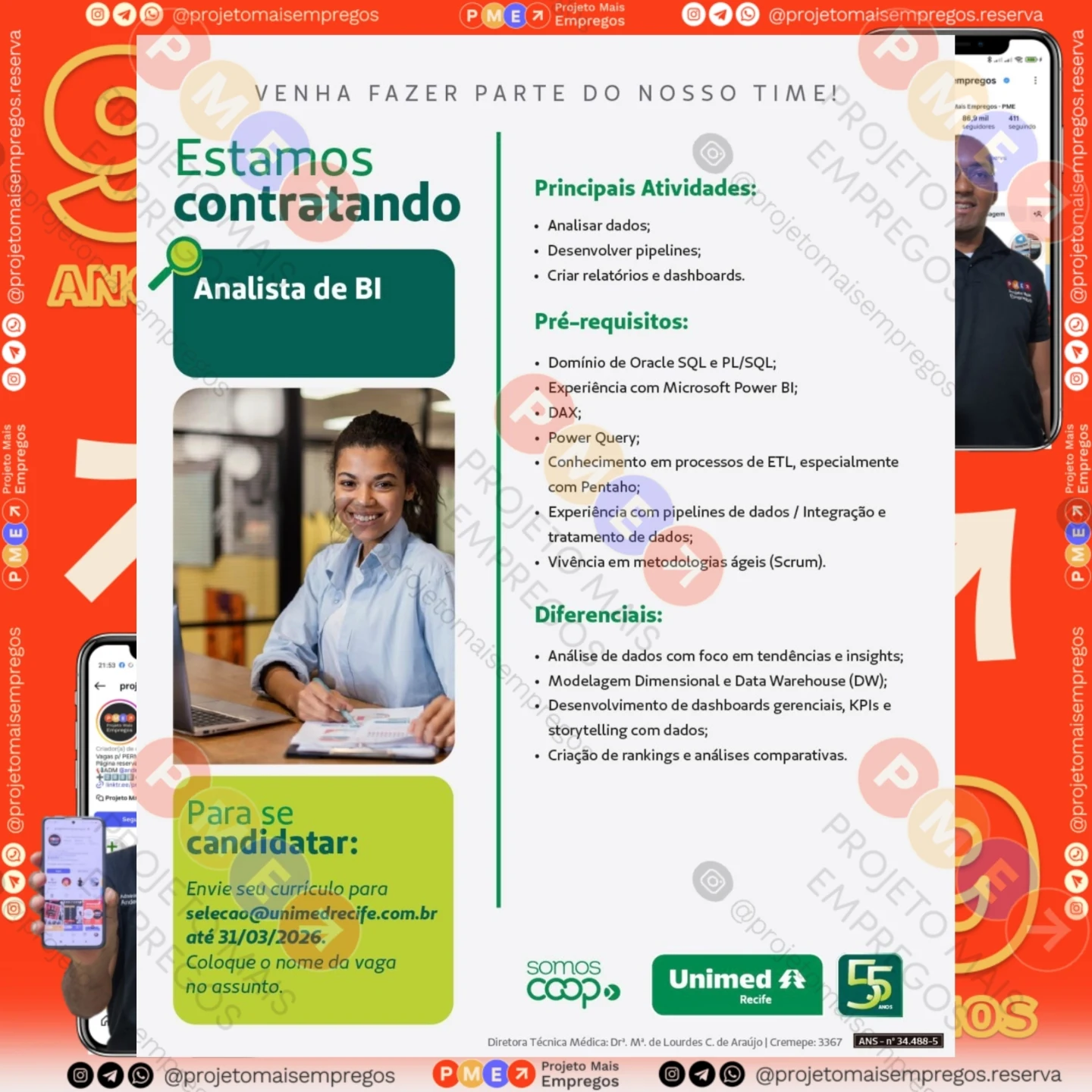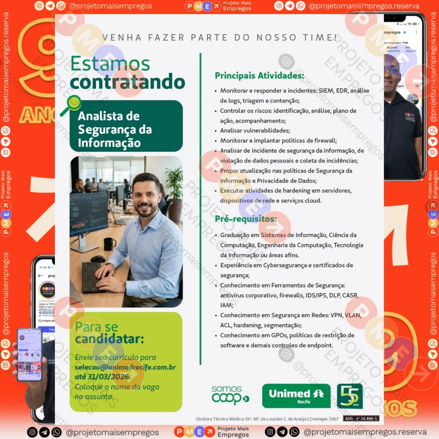 As informações sobre a vaga de emprego, como salário, remuneração, benefícios, requisitos, local de trabalho, forma de candidatura (e-mail ou whatsapp para enviar seu currículo) etc., estarão na imagem acima, caso estejam disponíveis.