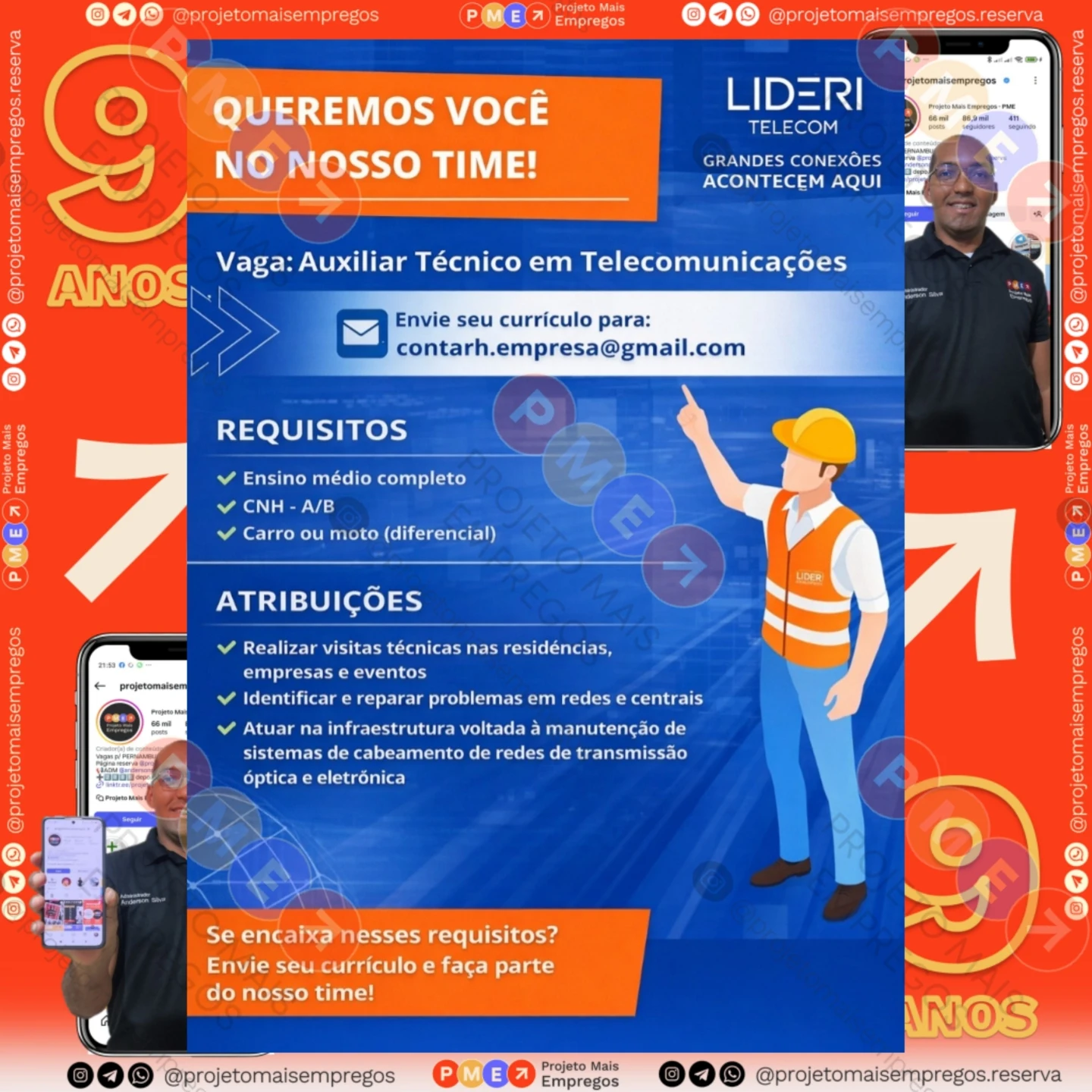 As informações sobre a vaga de emprego, como salário, remuneração, benefícios, requisitos, local de trabalho, forma de candidatura (e-mail ou whatsapp para enviar seu currículo) etc., estarão na imagem abaixo, caso estejam disponíveis.👇