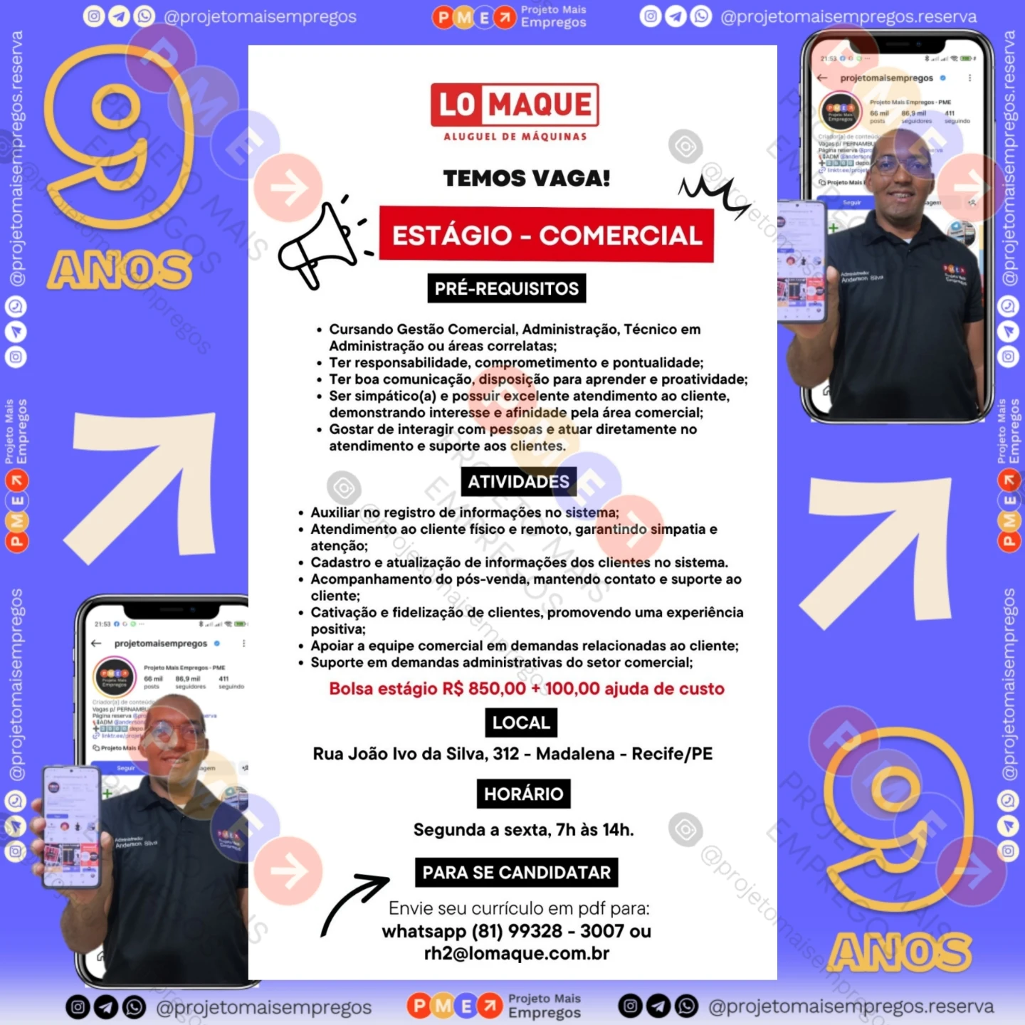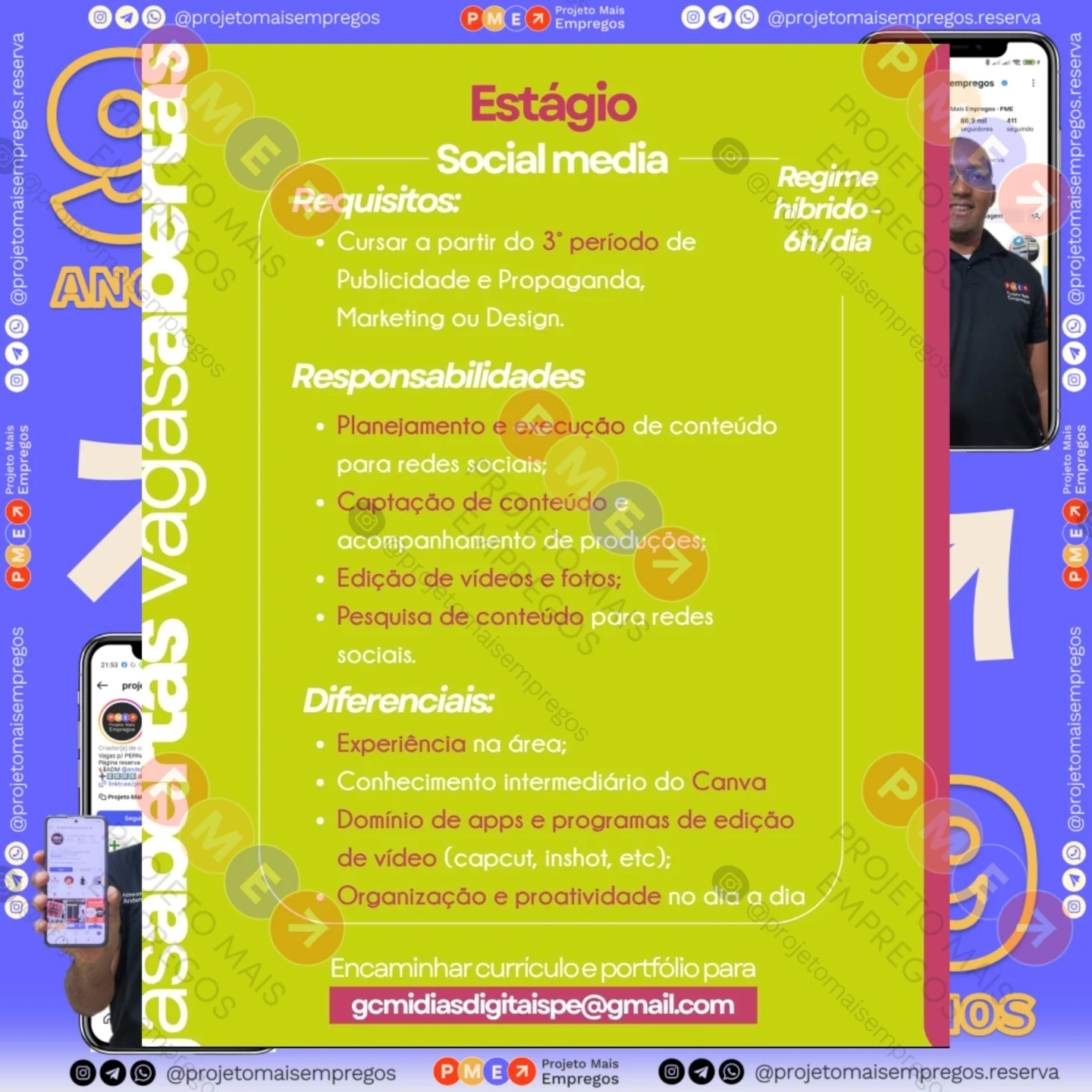 Perfil no Instagram: @projetomaisempregos.reserva
