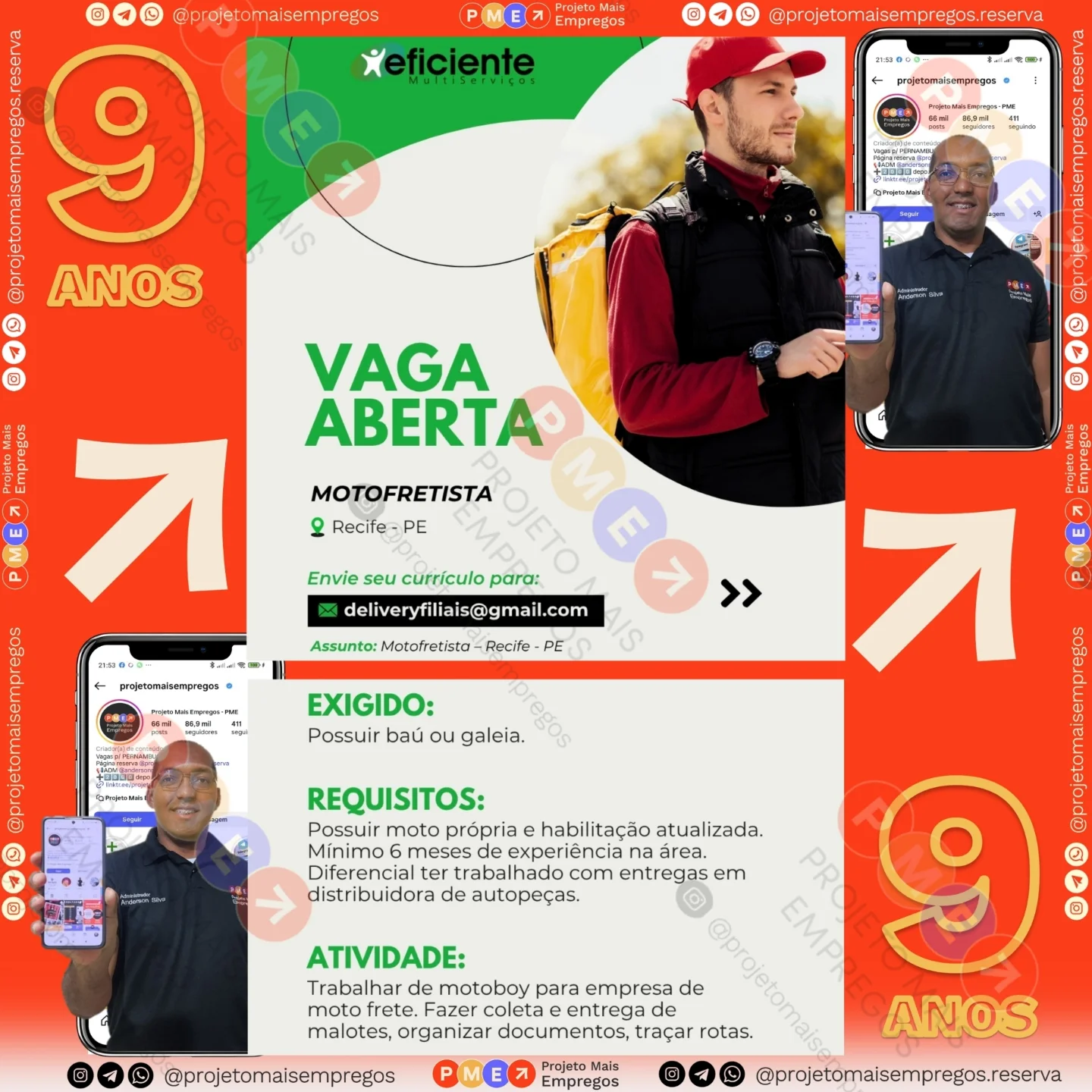 As informações sobre a vaga de emprego, como salário, remuneração, benefícios, requisitos, local de trabalho, forma de candidatura (e-mail ou whatsapp para enviar seu currículo) etc., estarão na imagem acima, caso estejam disponíveis.