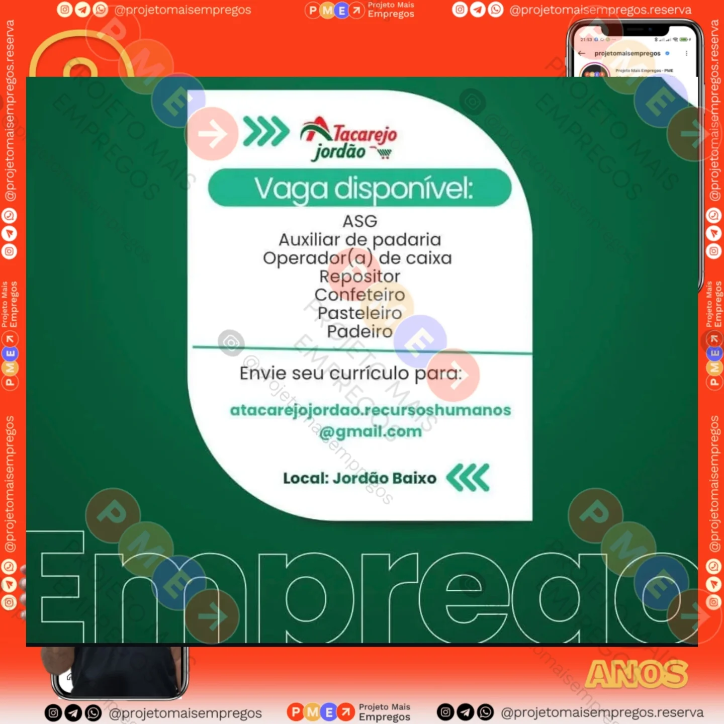 Perfil no Instagram: @projetomaisempregos