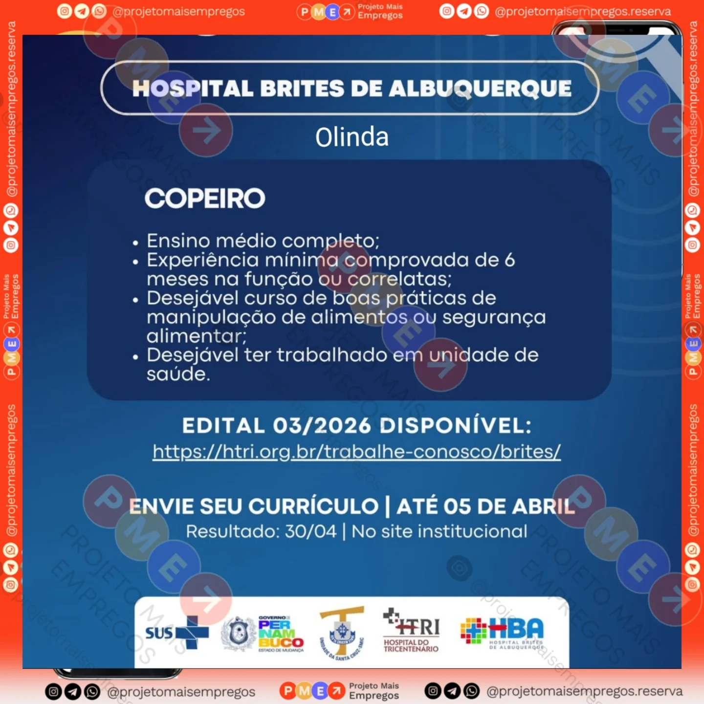 Link do post: https://www.instagram.com/projetomaisempregos/p/DWsF3TrFevH/