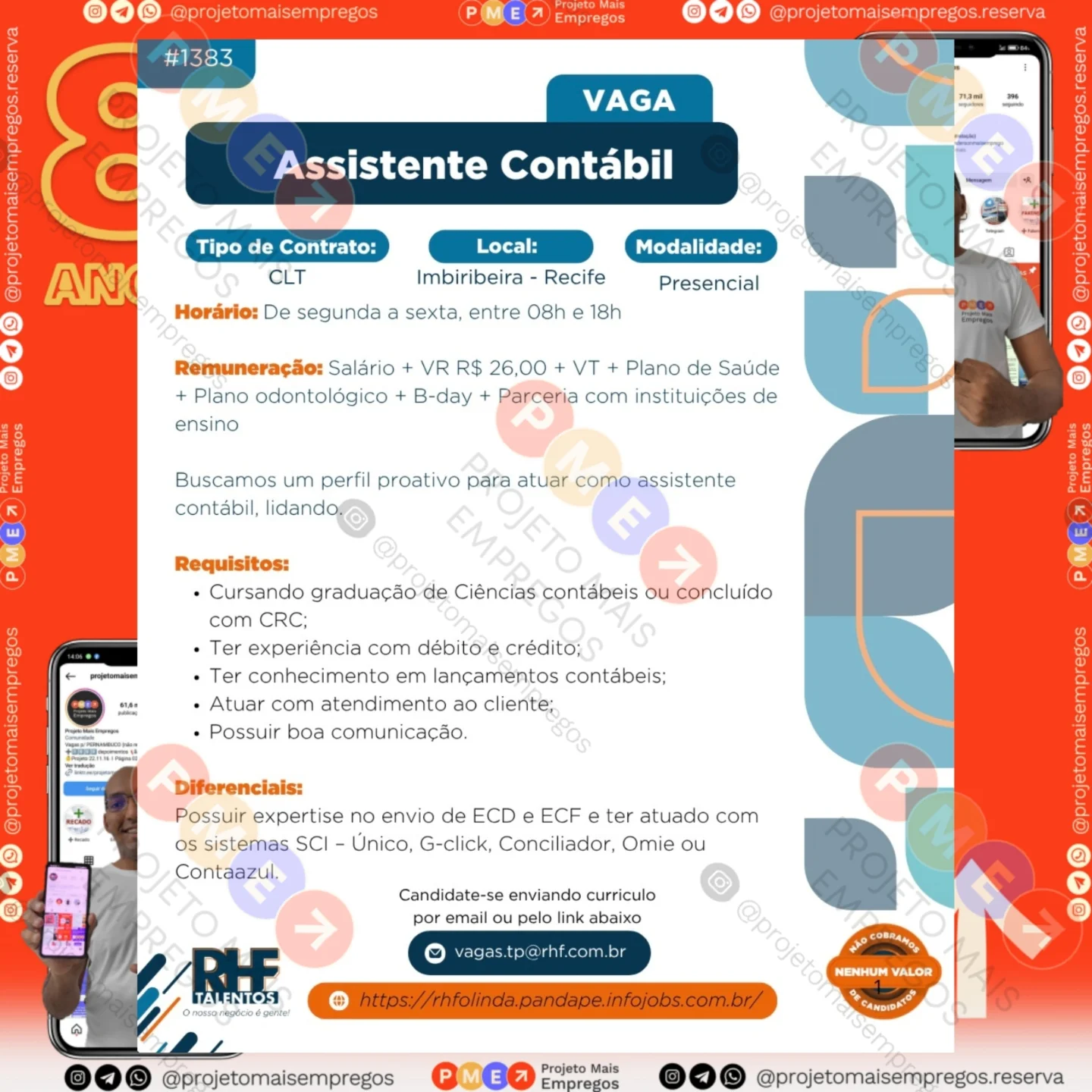 As informações sobre a vaga de emprego, como salário, remuneração, benefícios, requisitos, local de trabalho, forma de candidatura (e-mail ou whatsapp para enviar seu currículo) etc., estarão na imagem acima, caso estejam disponíveis.