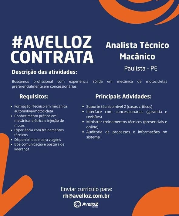 As informações sobre a vaga de emprego, como salário, remuneração, benefícios, requisitos, local de trabalho, forma de candidatura (e-mail ou whatsapp para enviar seu currículo) etc., estarão na imagem acima, caso estejam disponíveis.