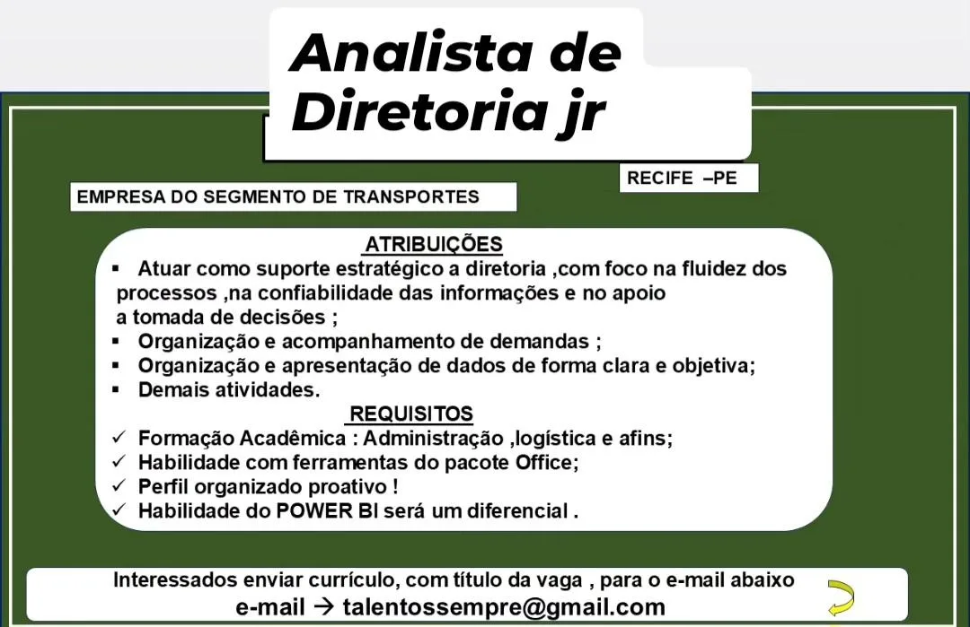 As informações sobre a vaga de emprego, como salário, remuneração, benefícios, requisitos, local de trabalho, forma de candidatura (e-mail ou whatsapp para enviar seu currículo) etc., estarão na imagem abaixo, caso estejam disponíveis.👇