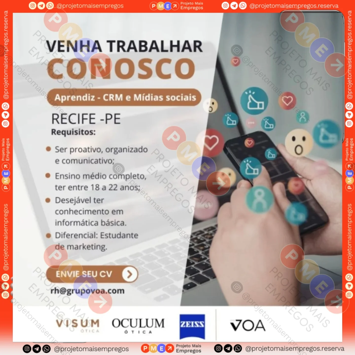 As informações sobre a vaga de emprego, como salário, remuneração, benefícios, requisitos, local de trabalho, forma de candidatura (e-mail ou whatsapp para enviar seu currículo) etc., estarão na imagem acima, caso estejam disponíveis.