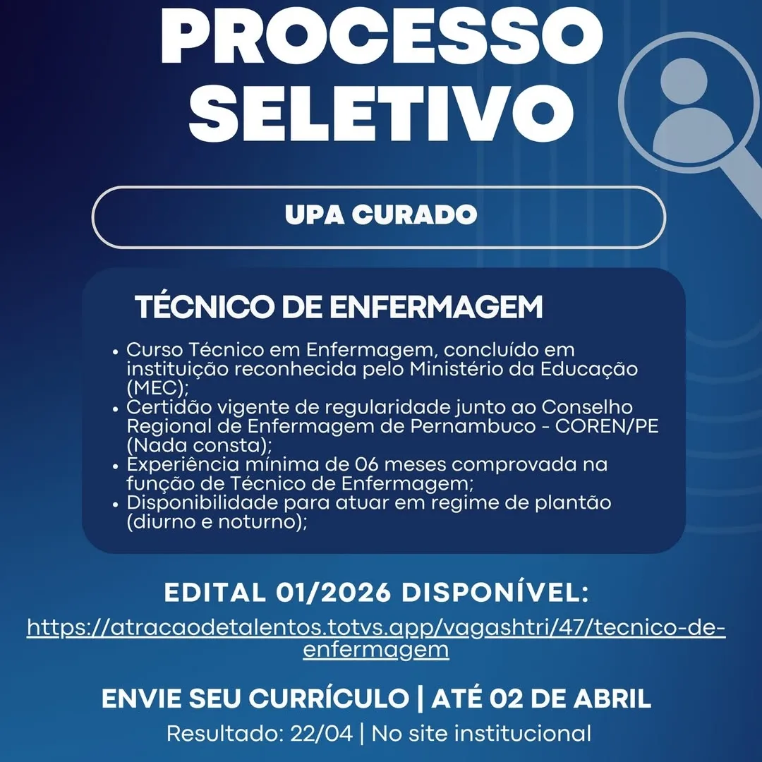 As informações sobre a vaga de emprego, como salário, remuneração, benefícios, requisitos, local de trabalho, forma de candidatura (e-mail ou whatsapp para enviar seu currículo) etc., estarão na imagem acima, caso estejam disponíveis.