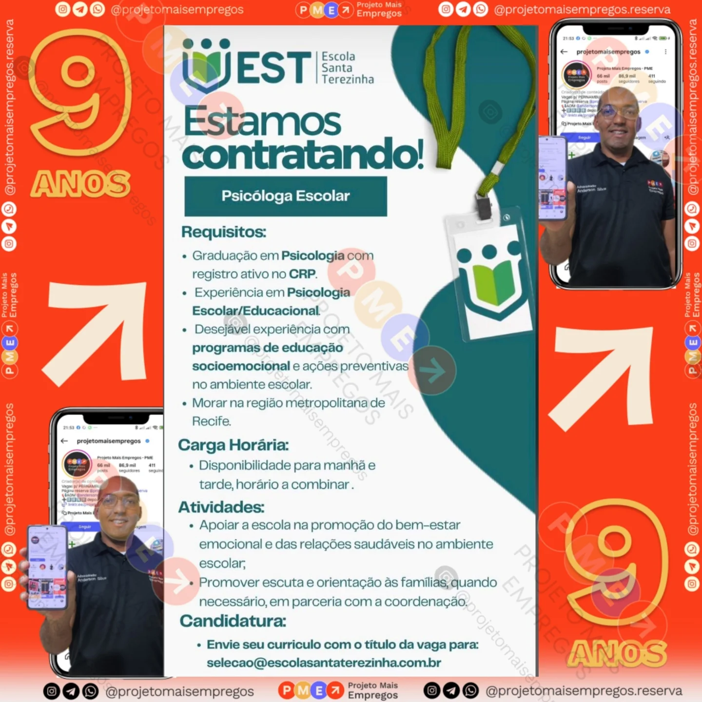 As informações sobre a vaga de emprego, como salário, remuneração, benefícios, requisitos, local de trabalho, forma de candidatura (e-mail ou whatsapp para enviar seu currículo) etc., estarão na imagem acima, caso estejam disponíveis.