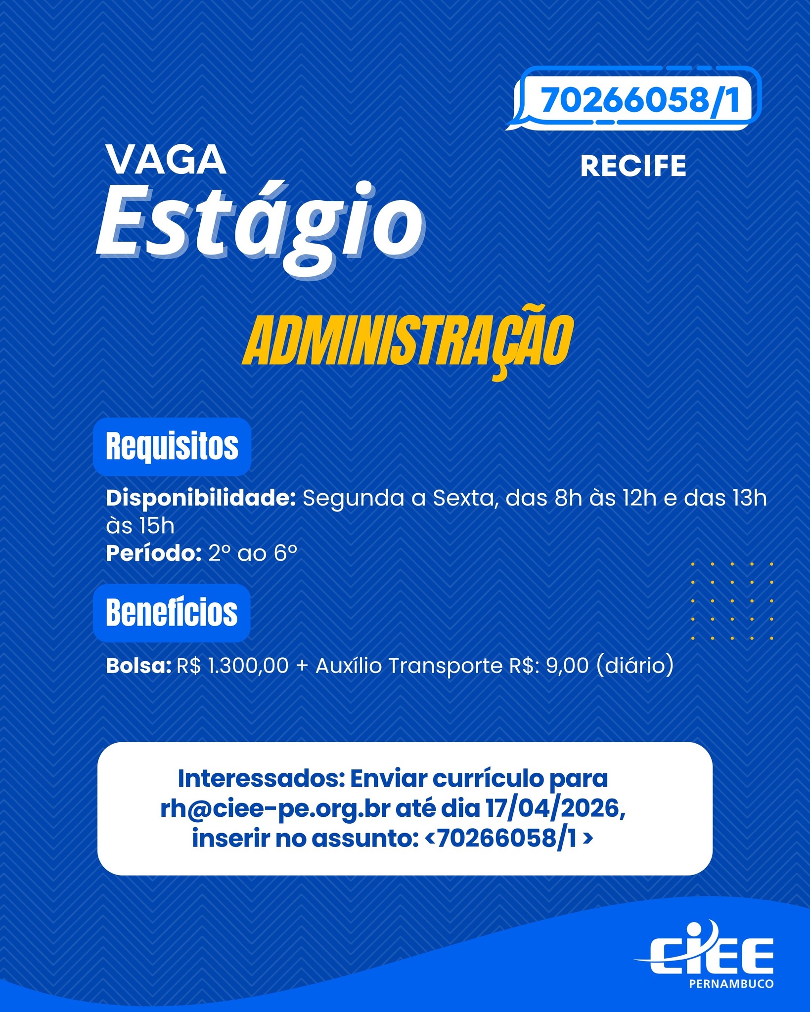 Quantidade de vagas: ESTAGIÁRIO(A): 4