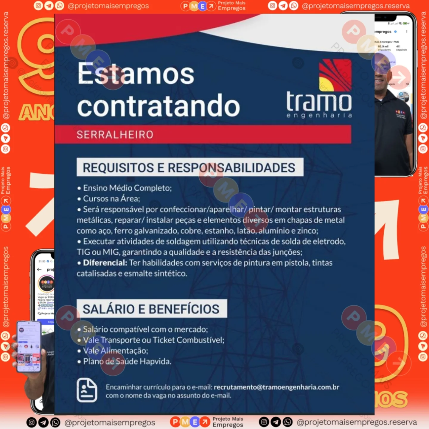 As informações sobre a vaga de emprego, como salário, remuneração, benefícios, requisitos, local de trabalho, forma de candidatura (e-mail ou whatsapp para enviar seu currículo) etc., estarão na imagem abaixo, caso estejam disponíveis.👇