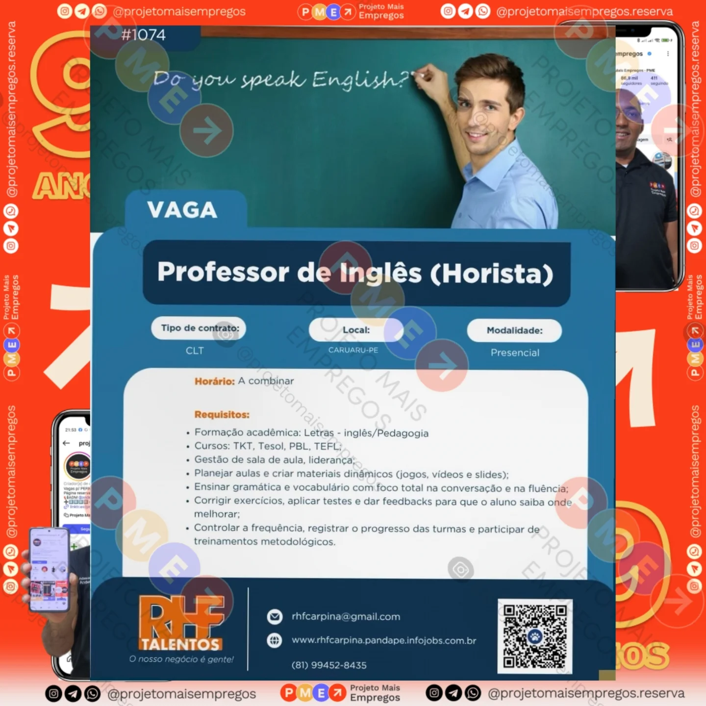 As informações sobre a vaga de emprego, como salário, remuneração, benefícios, requisitos, local de trabalho, forma de candidatura (e-mail ou whatsapp para enviar seu currículo) etc., estarão na imagem acima, caso estejam disponíveis.