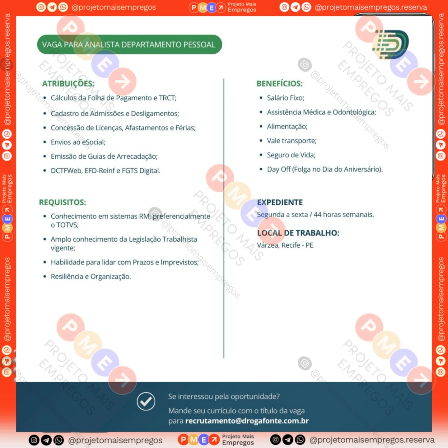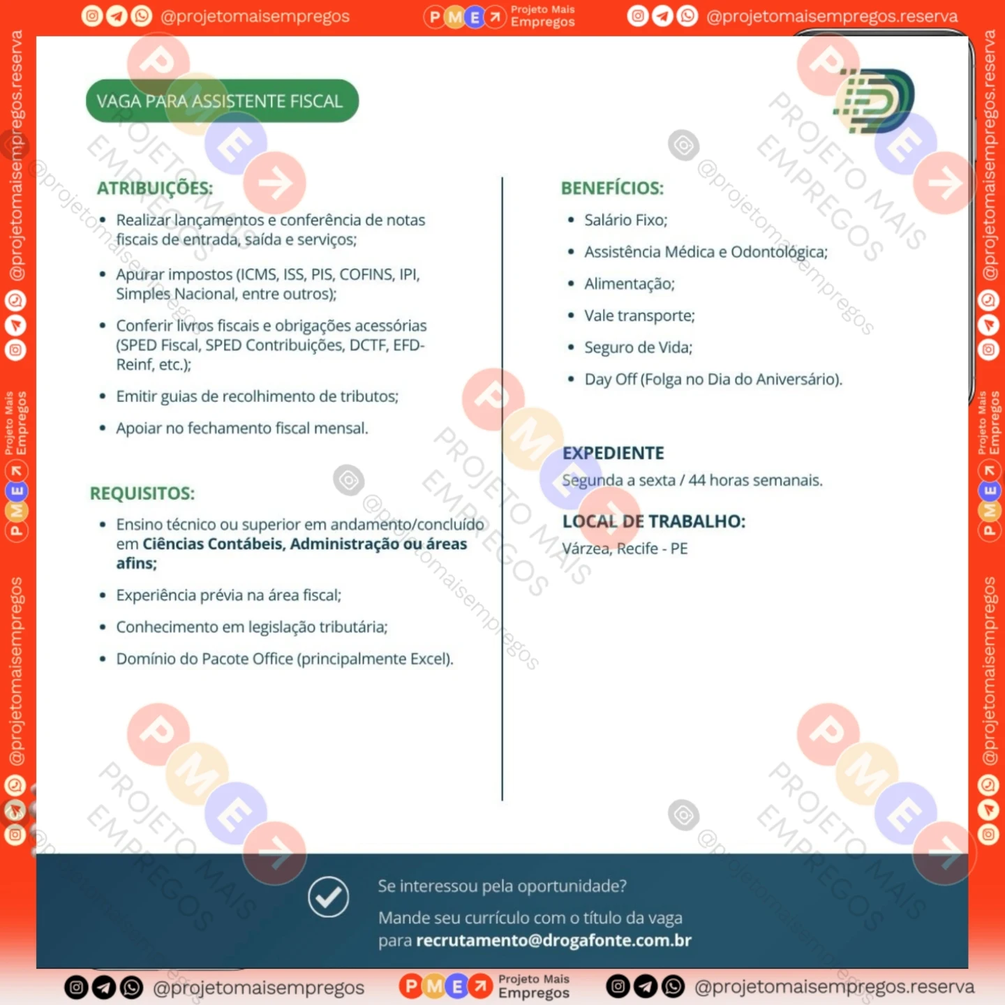 As informações sobre a vaga de emprego, como salário, remuneração, benefícios, requisitos, local de trabalho, forma de candidatura (e-mail ou whatsapp para enviar seu currículo) etc., estarão na imagem abaixo, caso estejam disponíveis.👇