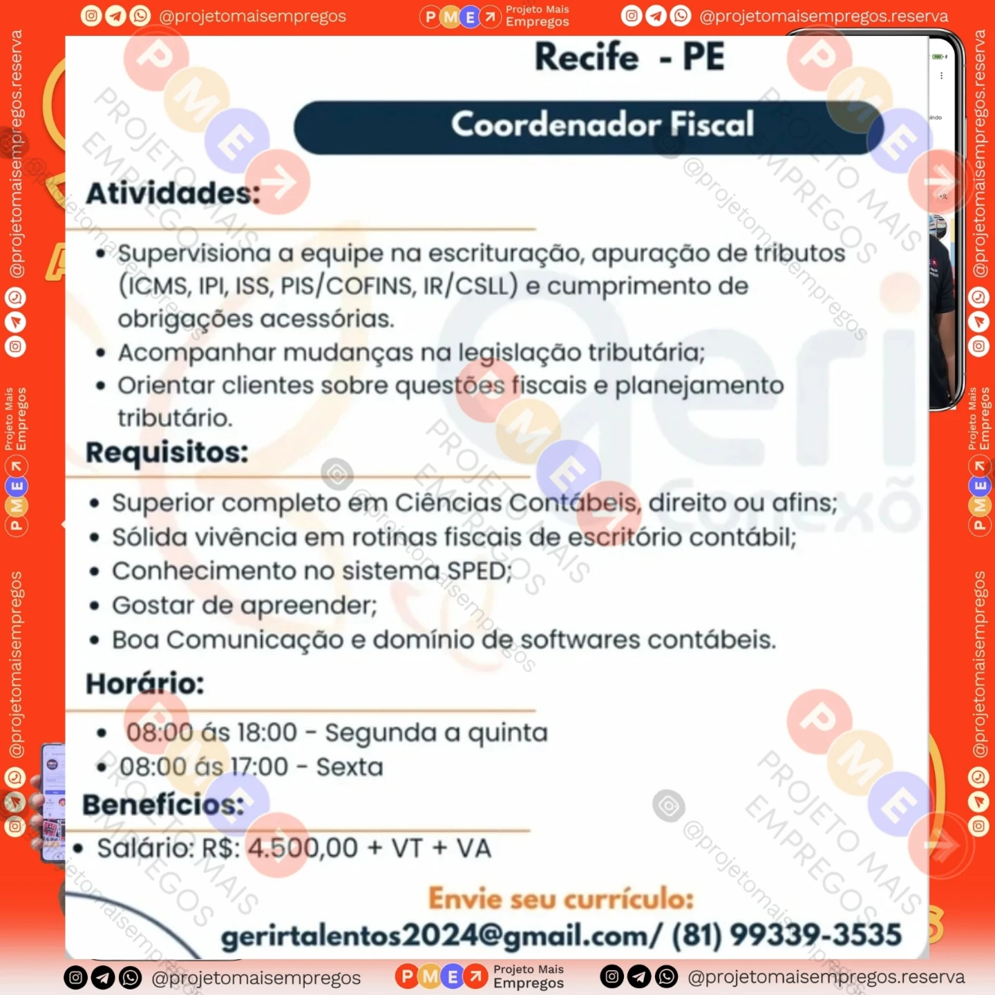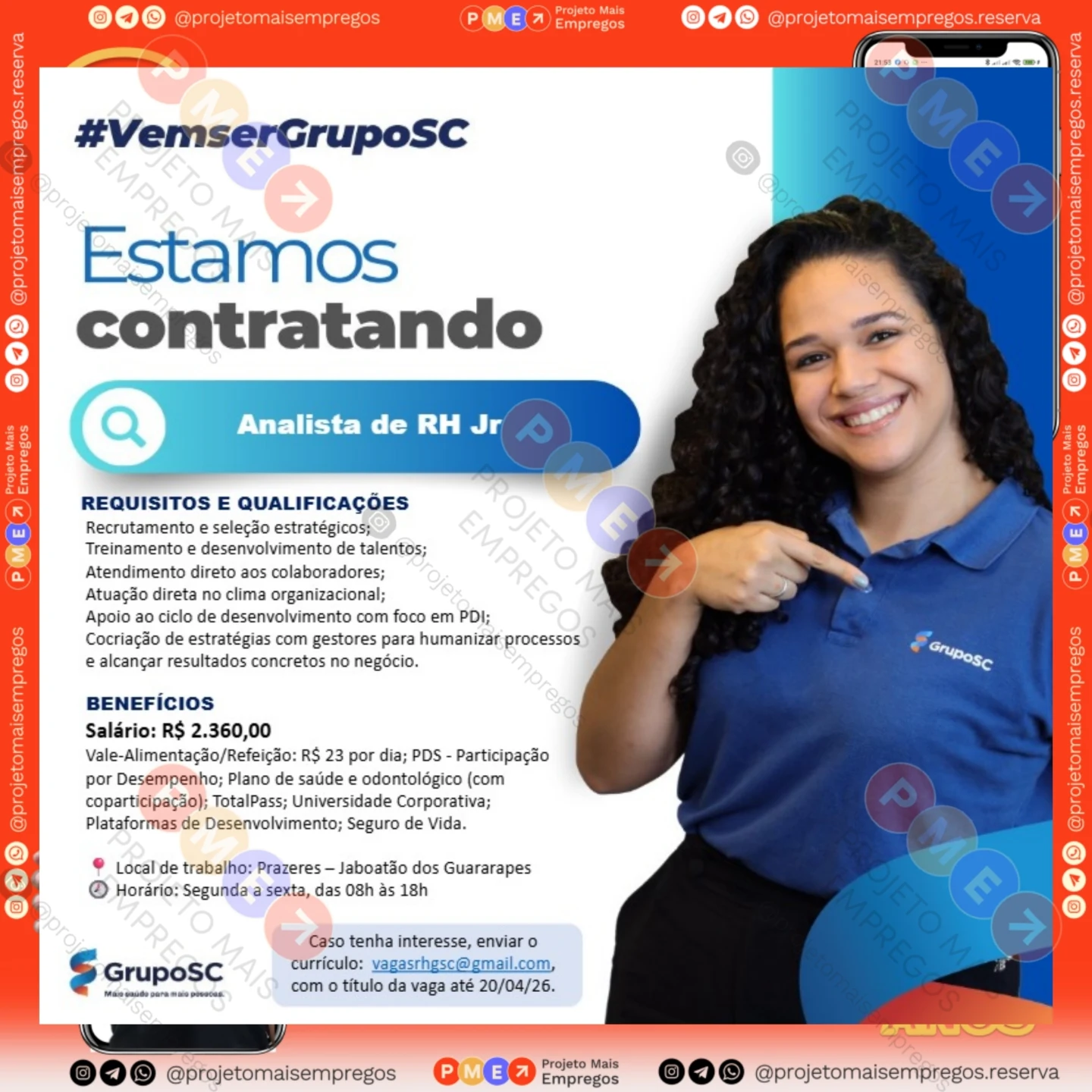 As informações sobre a vaga de emprego, como salário, remuneração, benefícios, requisitos, local de trabalho, forma de candidatura (e-mail ou whatsapp para enviar seu currículo) etc., estarão na imagem acima, caso estejam disponíveis.