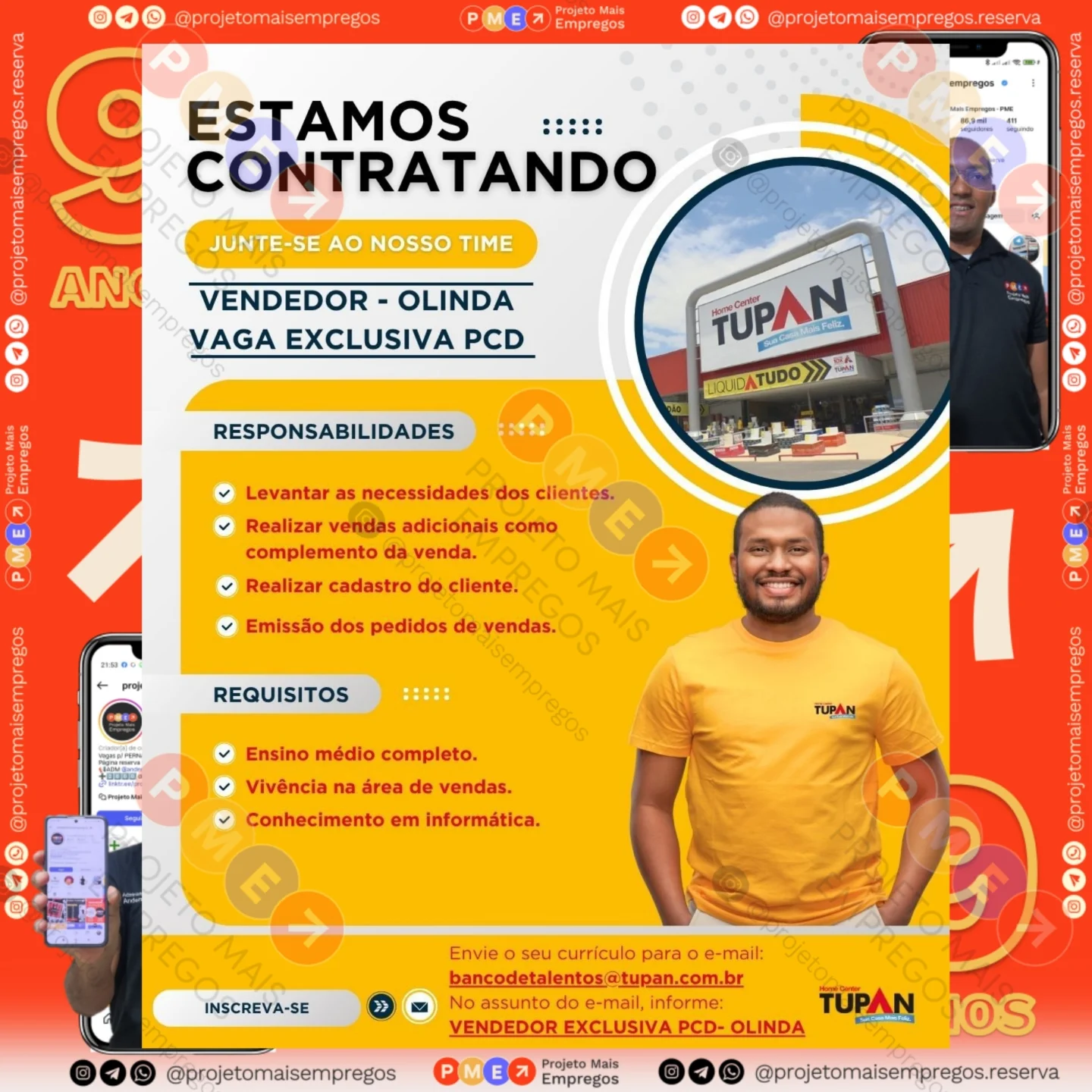 As informações sobre a vaga de emprego, como salário, remuneração, benefícios, requisitos, local de trabalho, forma de candidatura (e-mail ou whatsapp para enviar seu currículo) etc., estarão na imagem abaixo, caso estejam disponíveis.👇