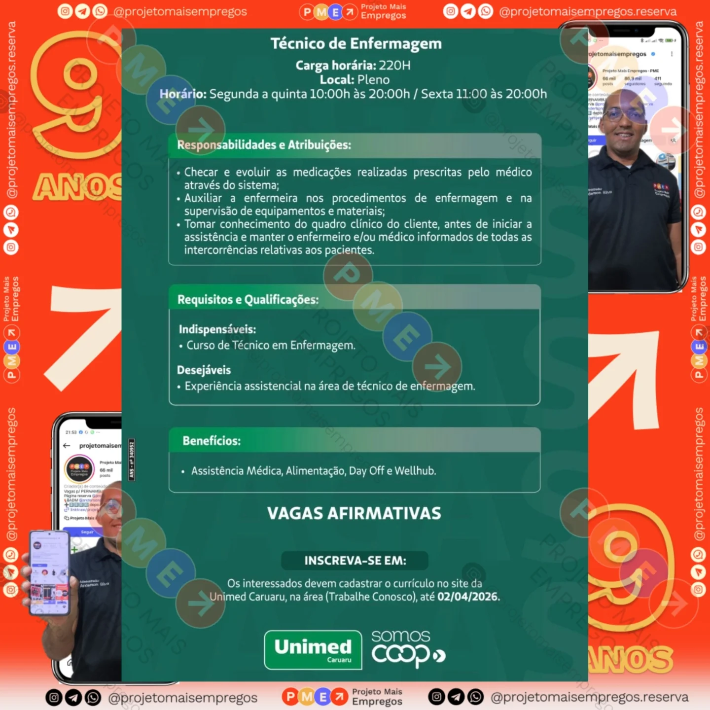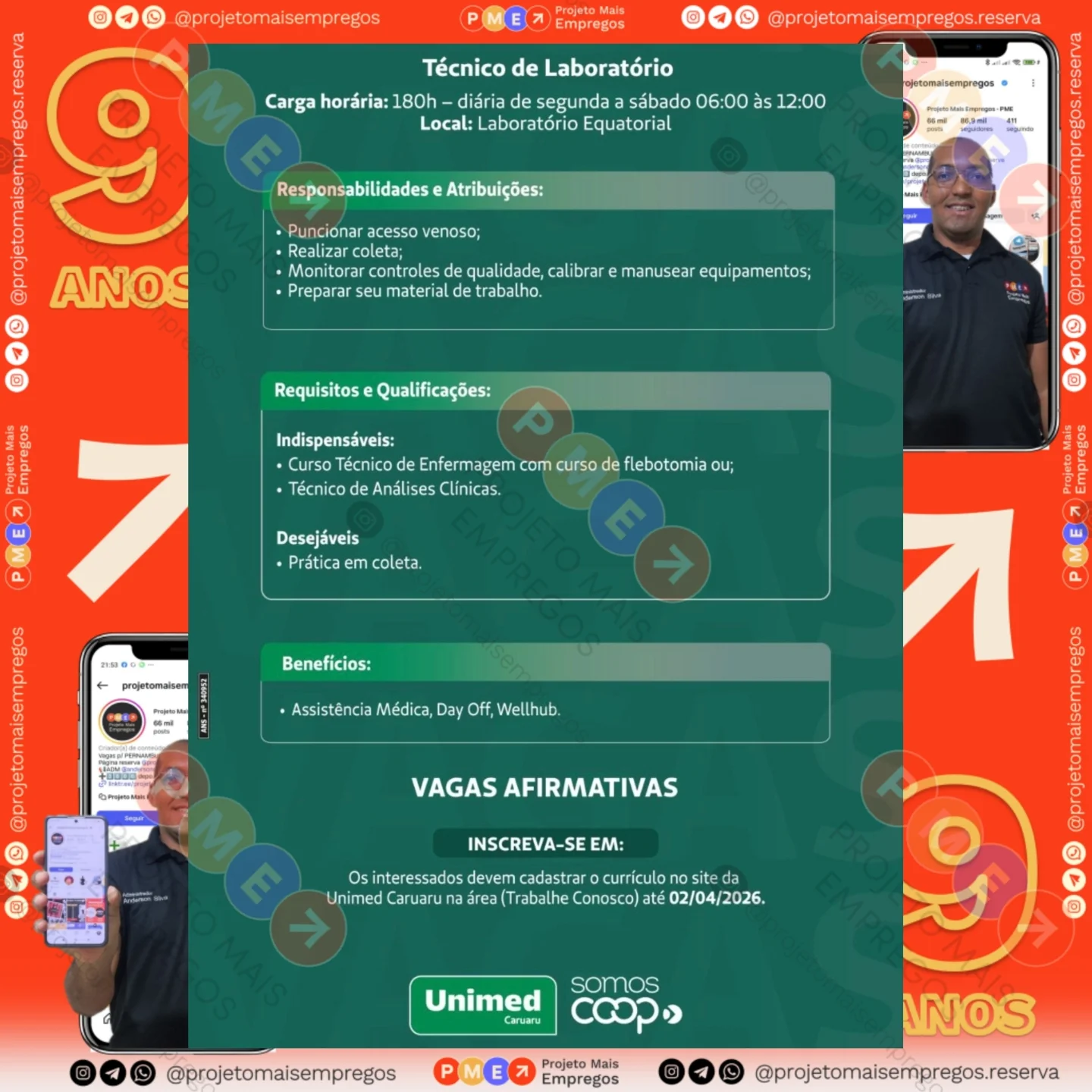 As informações sobre a vaga de emprego, como salário, remuneração, benefícios, requisitos, local de trabalho, forma de candidatura (e-mail ou whatsapp para enviar seu currículo) etc., estarão na imagem acima, caso estejam disponíveis.