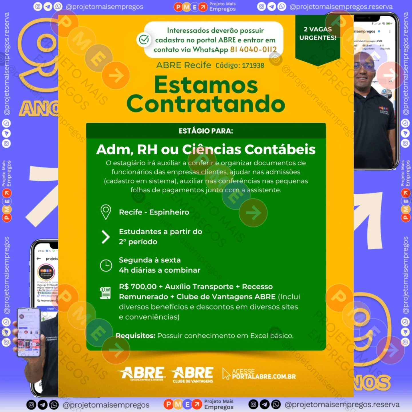 Perfil no Instagram: @projetomaisempregos.reserva