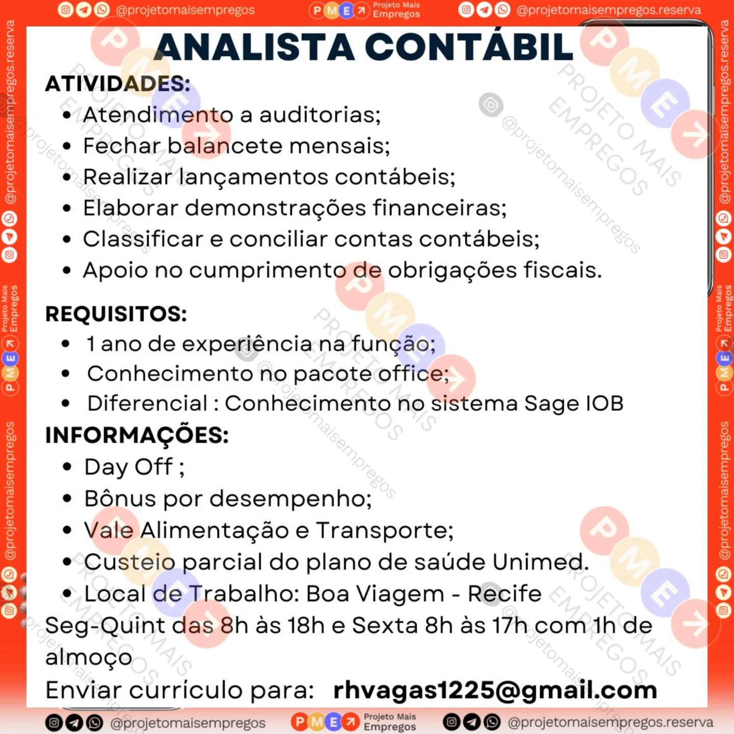 6 Vagas de emprego para Analista Contábil, Auxiliar / Assistente de Rh (recursos humanos), Analista de Rh (recursos humanos), Auxiliar / Assistente Administrativo, Atendente em Pernambuco neste sábado (11/04)