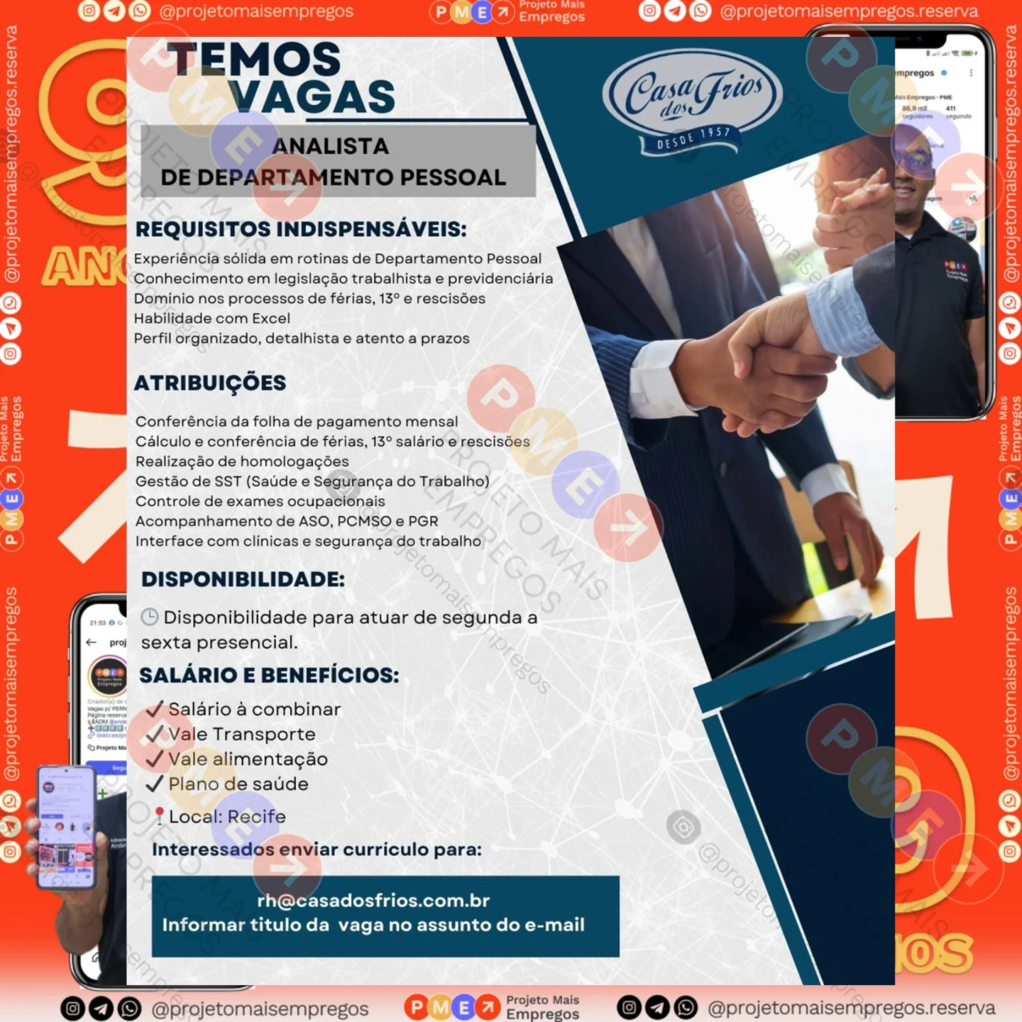 As informações sobre a vaga de emprego, como salário, remuneração, benefícios, requisitos, local de trabalho, forma de candidatura (e-mail ou whatsapp para enviar seu currículo) etc., estarão na imagem acima, caso estejam disponíveis.