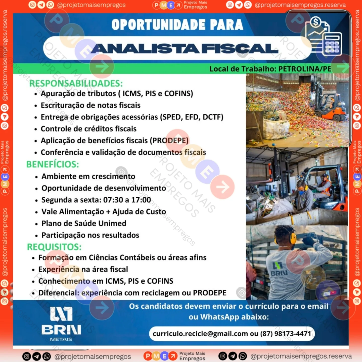 As informações sobre a vaga de emprego, como salário, remuneração, benefícios, requisitos, local de trabalho, forma de candidatura (e-mail ou whatsapp para enviar seu currículo) etc., estarão na imagem abaixo, caso estejam disponíveis.👇