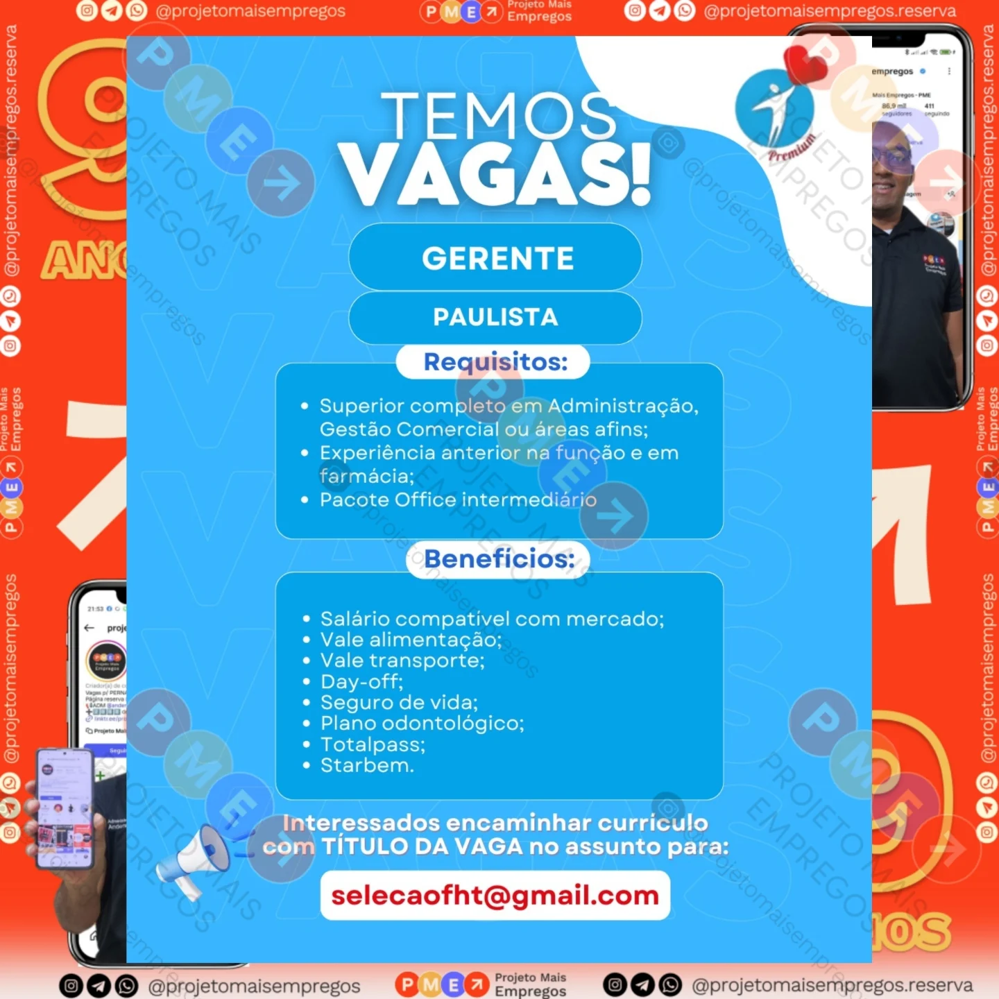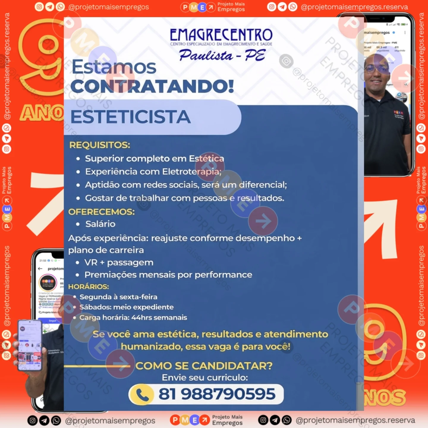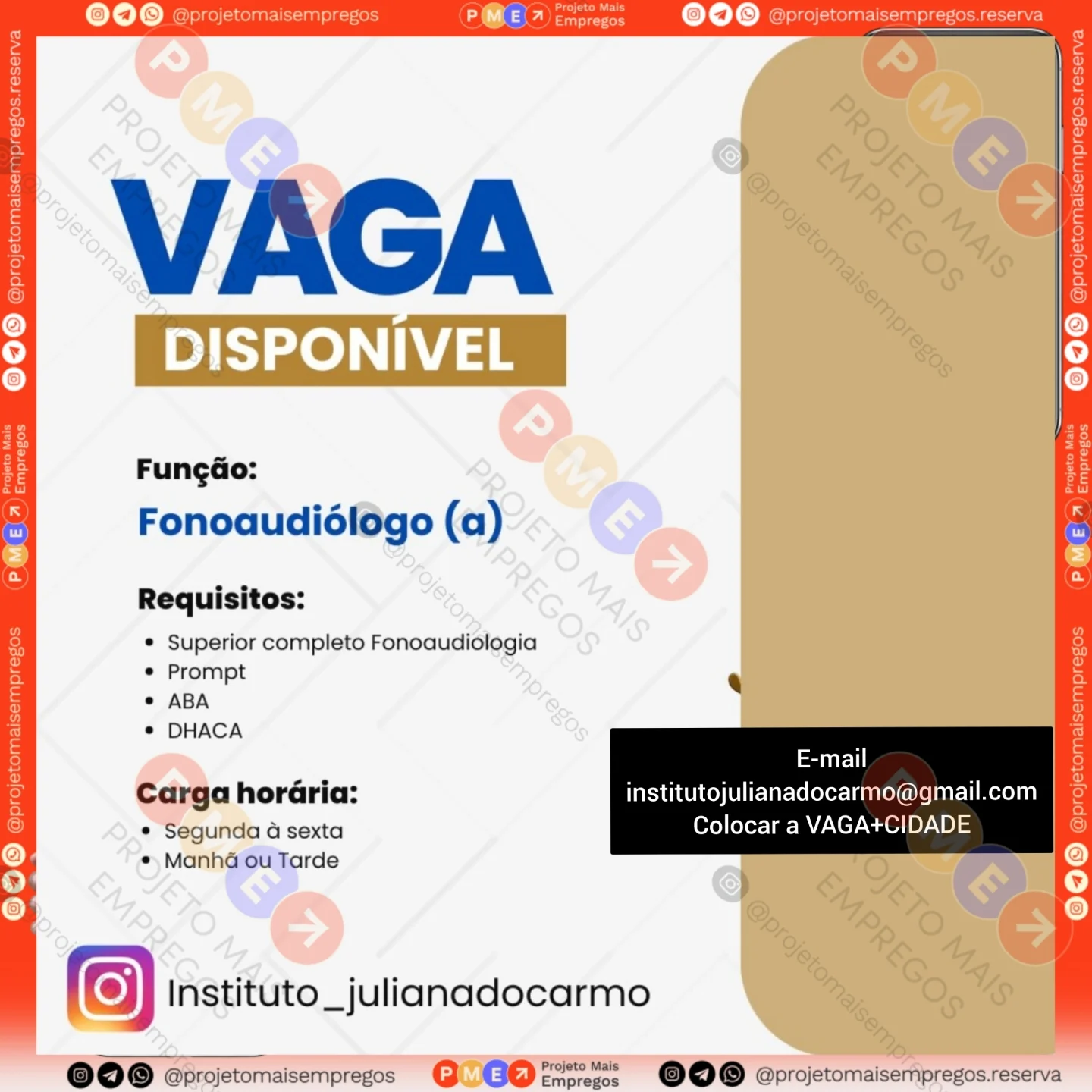 As informações sobre a vaga de emprego, como salário, remuneração, benefícios, requisitos, local de trabalho, forma de candidatura (e-mail ou whatsapp para enviar seu currículo) etc., estarão na imagem acima, caso estejam disponíveis.