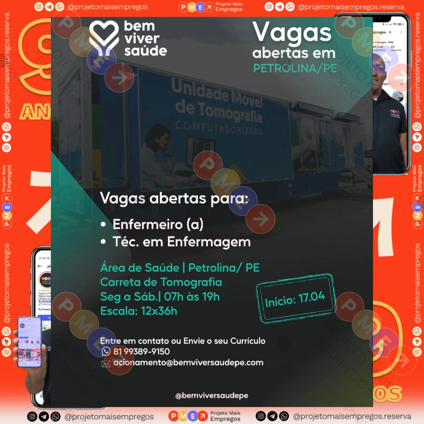 Benefícios: ATENDENTE: participação por resultados (PLR), plano de saúde, seguro de vida, vale-alimentação, vale-transporte; ENFERMEIRO(A): diversos benefícios; TÉCNICO(A) DE ENFERMAGEM: diversos benefícios