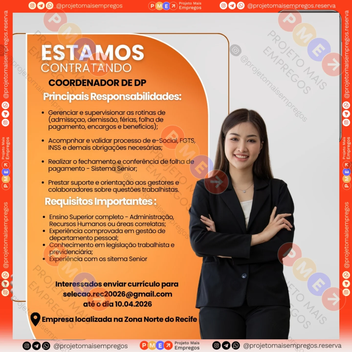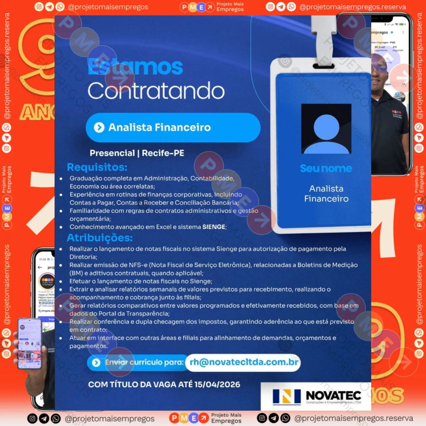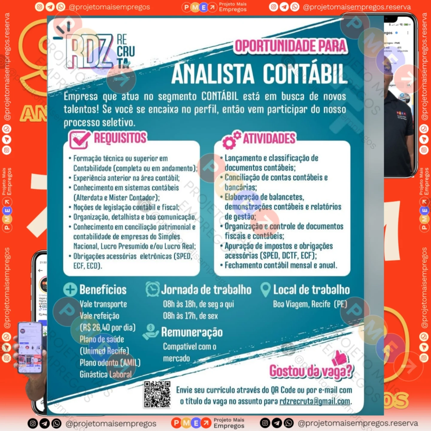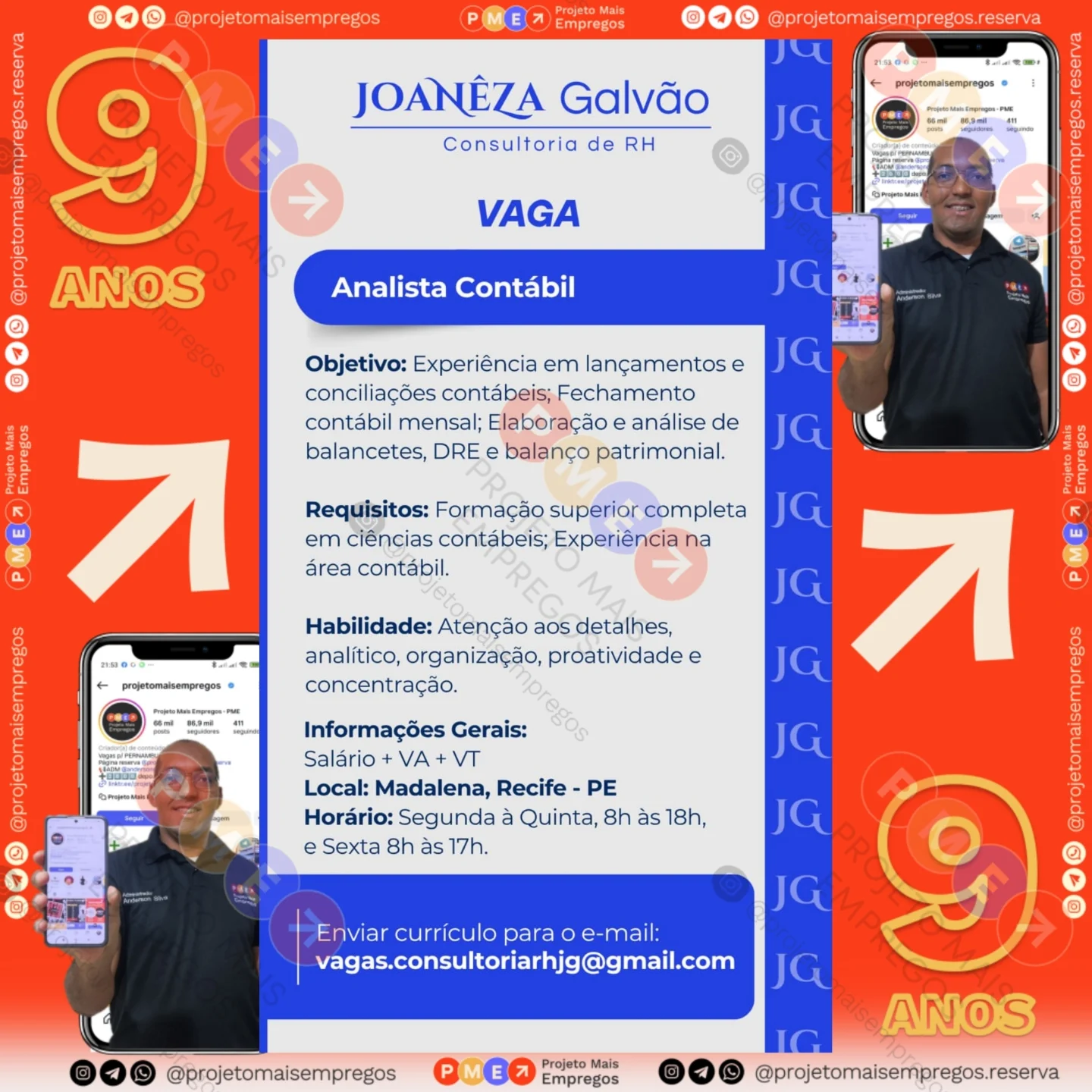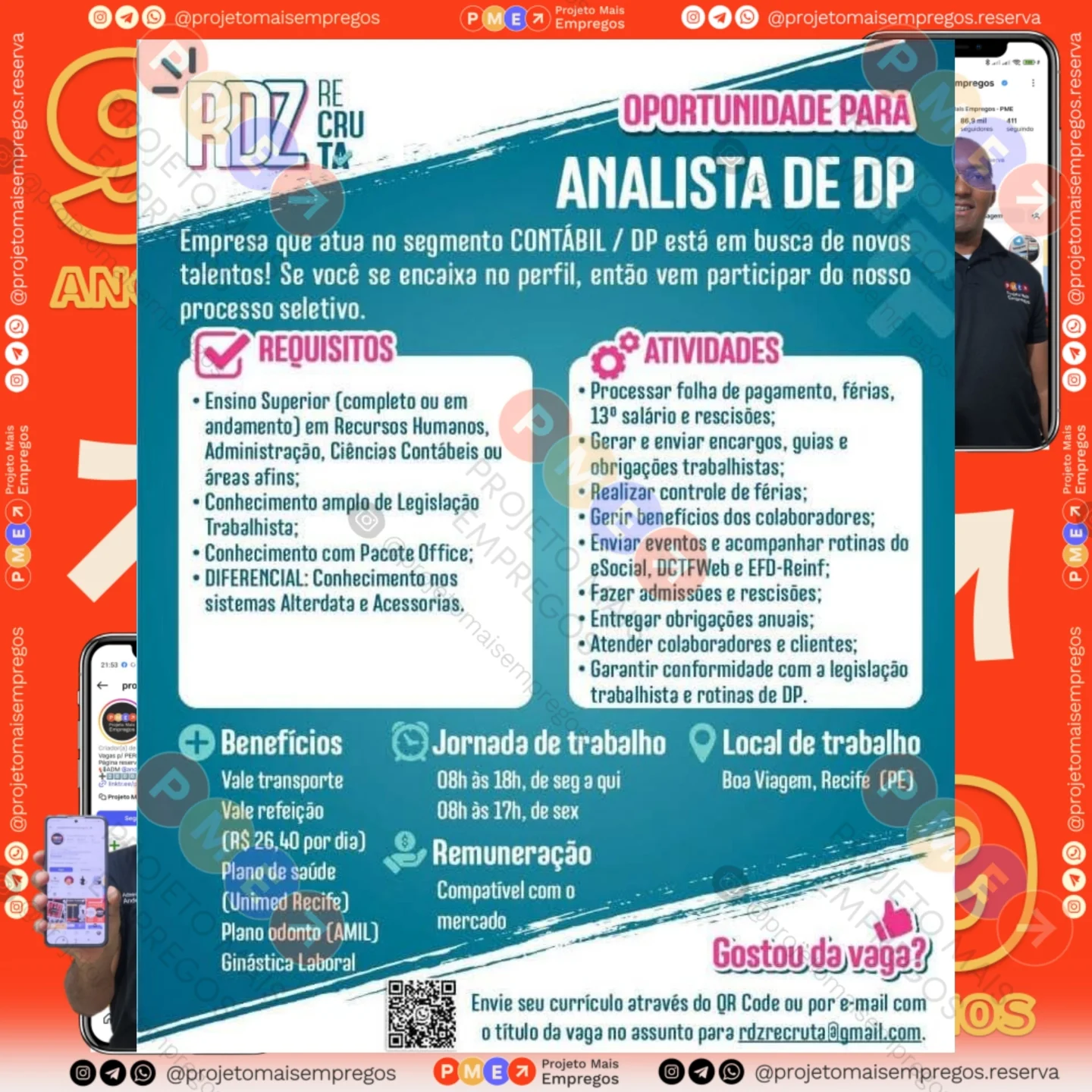 As informações sobre a vaga de emprego, como salário, remuneração, benefícios, requisitos, local de trabalho, forma de candidatura (e-mail ou whatsapp para enviar seu currículo) etc., estarão na imagem acima, caso estejam disponíveis.