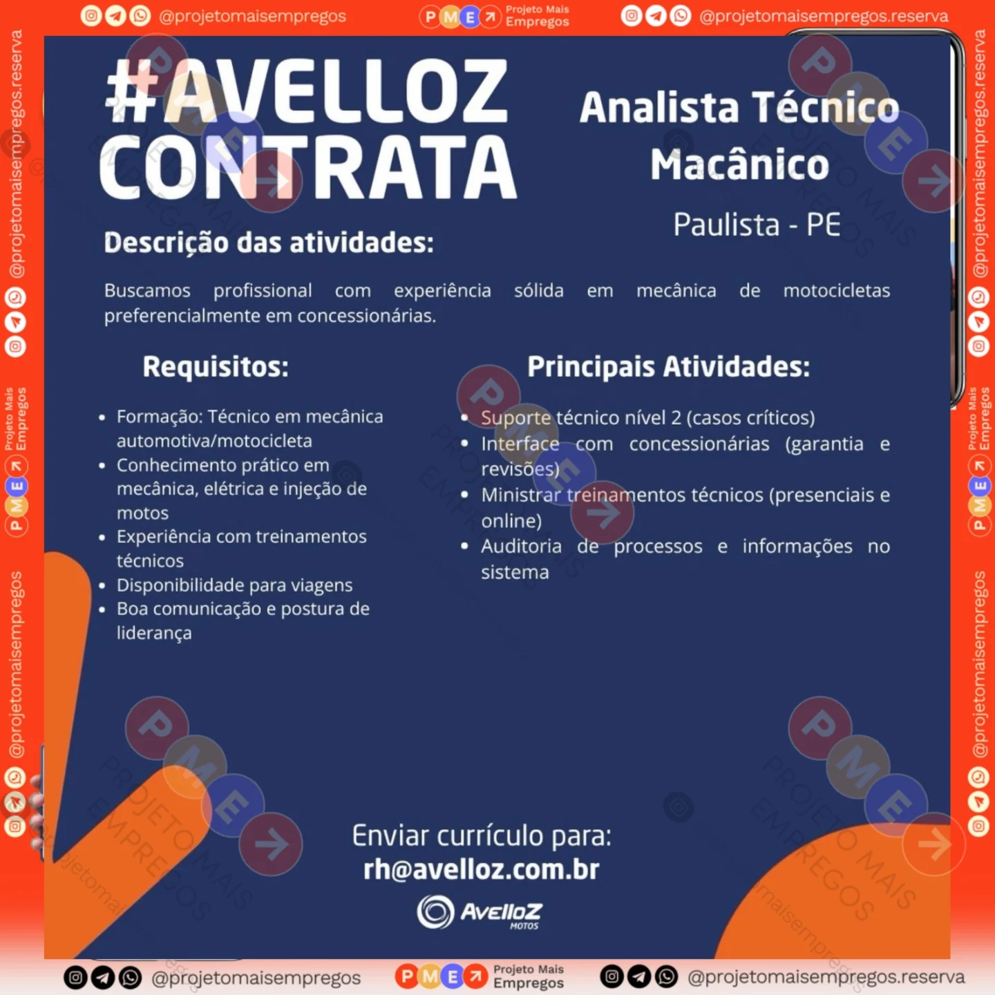As informações sobre a vaga de emprego, como salário, remuneração, benefícios, requisitos, local de trabalho, forma de candidatura (e-mail ou whatsapp para enviar seu currículo) etc., estarão na imagem acima, caso estejam disponíveis.