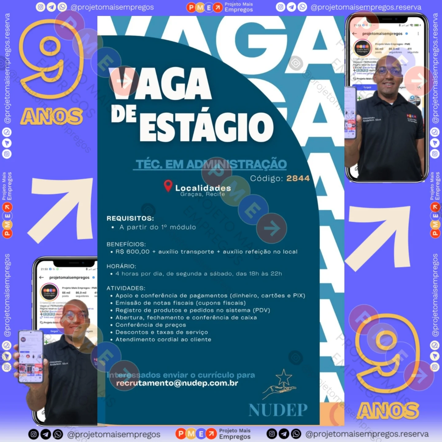As informações sobre a vaga de emprego, como salário, remuneração, benefícios, requisitos, local de trabalho, forma de candidatura (e-mail ou whatsapp para enviar seu currículo) etc., estarão na imagem acima, caso estejam disponíveis.
