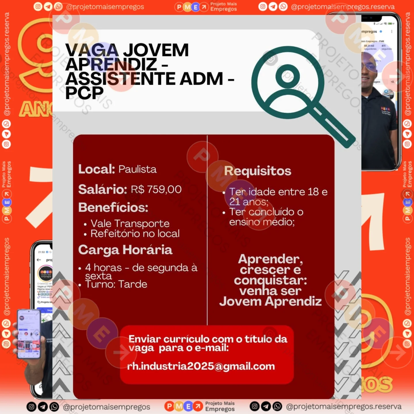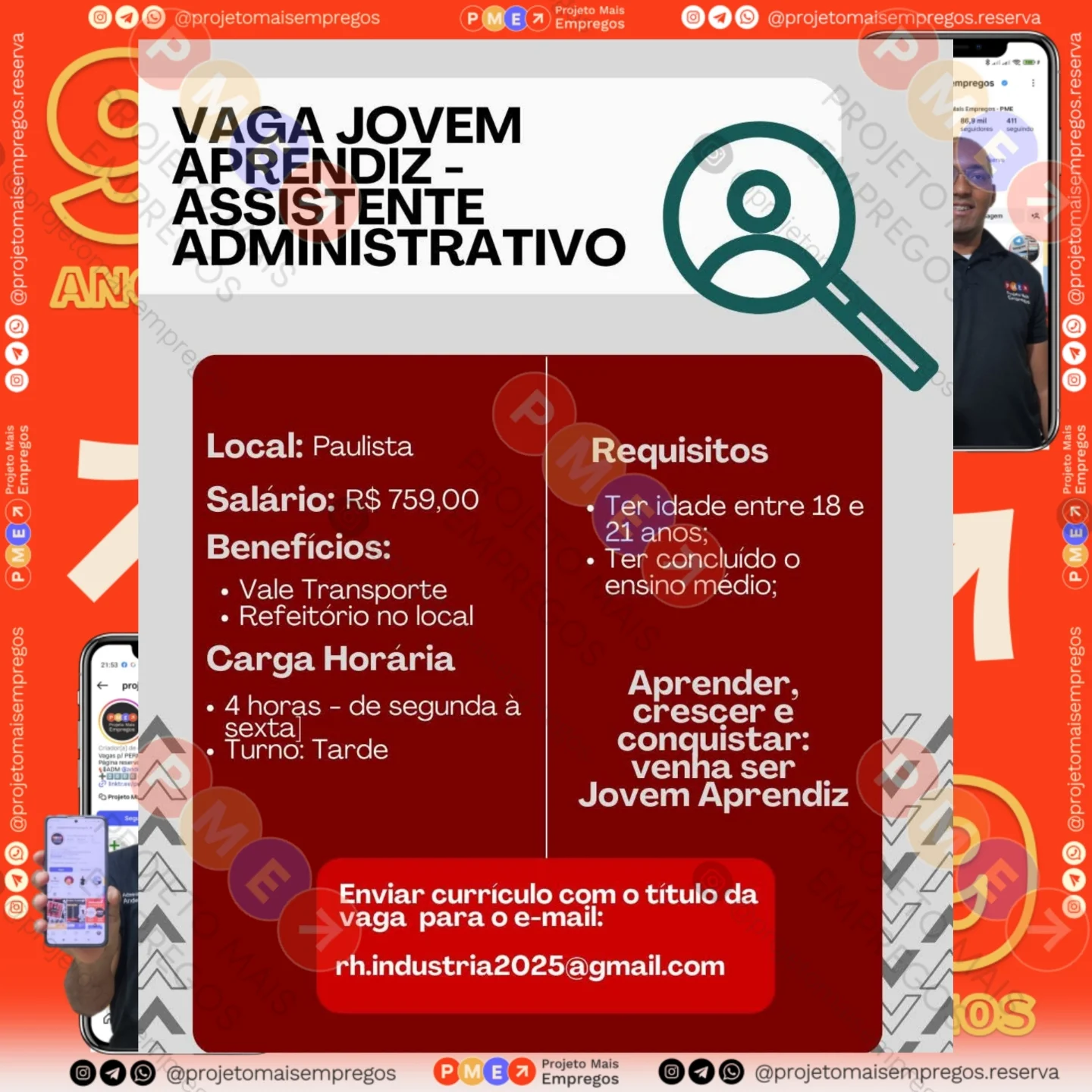 As informações sobre a vaga de emprego, como salário, remuneração, benefícios, requisitos, local de trabalho, forma de candidatura (e-mail ou whatsapp para enviar seu currículo) etc., estarão na imagem acima, caso estejam disponíveis.