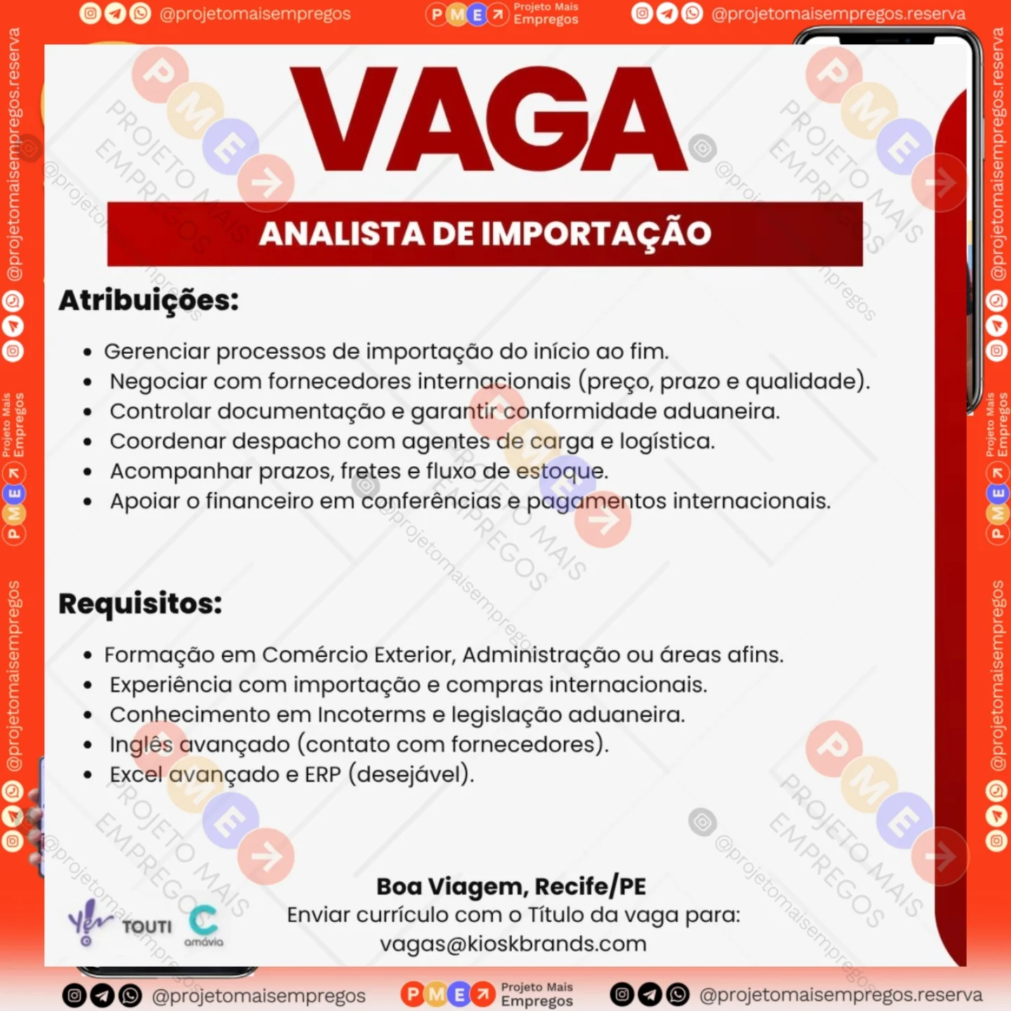 As informações sobre a vaga de emprego, como salário, remuneração, benefícios, requisitos, local de trabalho, forma de candidatura (e-mail ou whatsapp para enviar seu currículo) etc., estarão na imagem abaixo, caso estejam disponíveis.👇