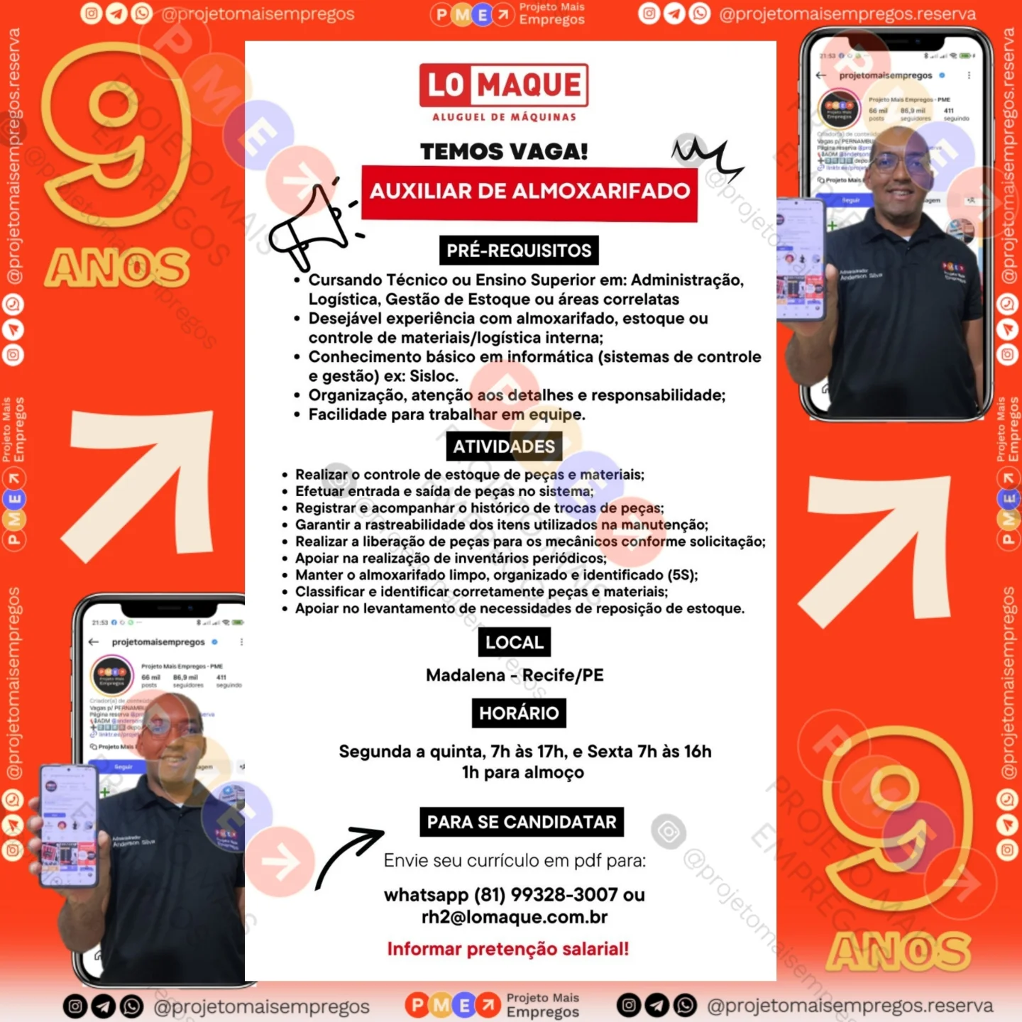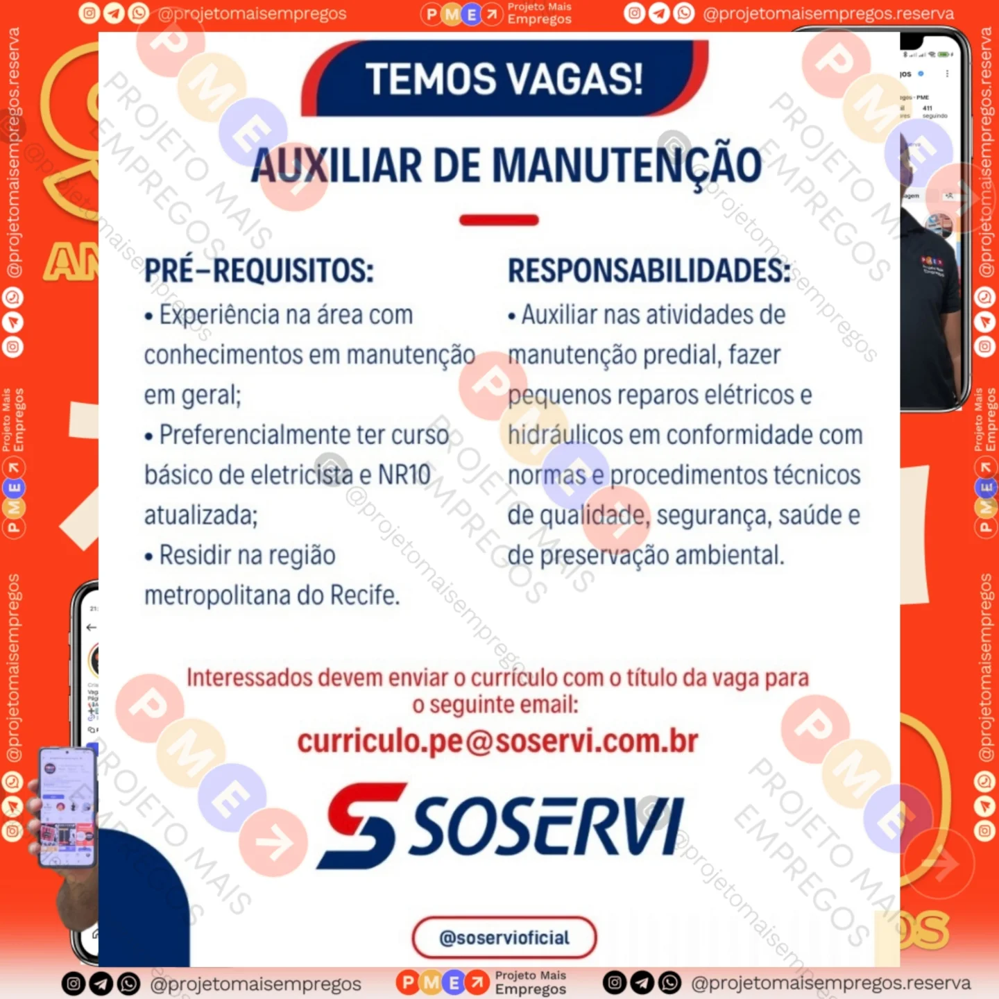 As informações sobre a vaga de emprego, como salário, remuneração, benefícios, requisitos, local de trabalho, forma de candidatura (e-mail ou whatsapp para enviar seu currículo) etc., estarão na imagem acima, caso estejam disponíveis.