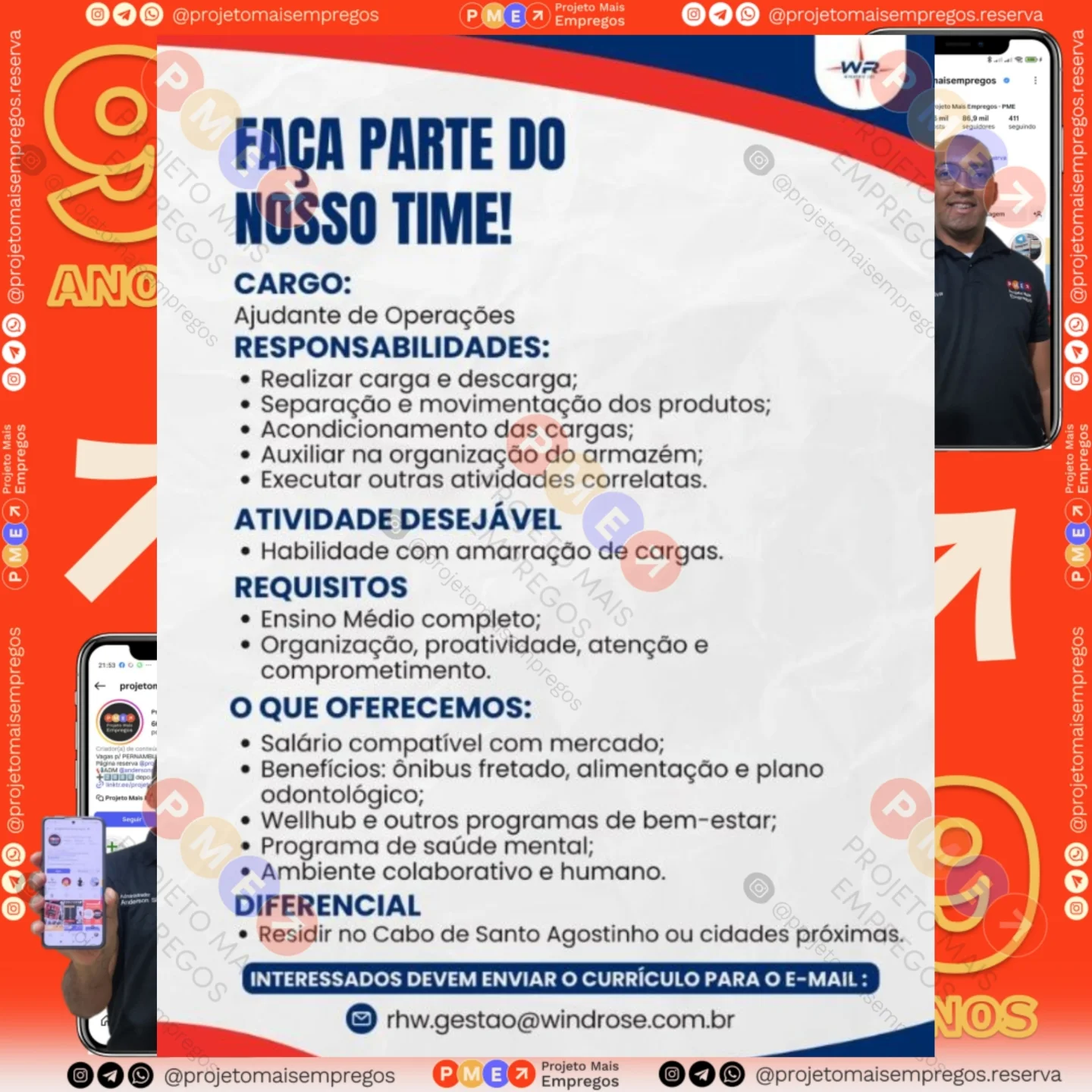 As informações sobre a vaga de emprego, como salário, remuneração, benefícios, requisitos, local de trabalho, forma de candidatura (e-mail ou whatsapp para enviar seu currículo) etc., estarão na imagem abaixo, caso estejam disponíveis.👇