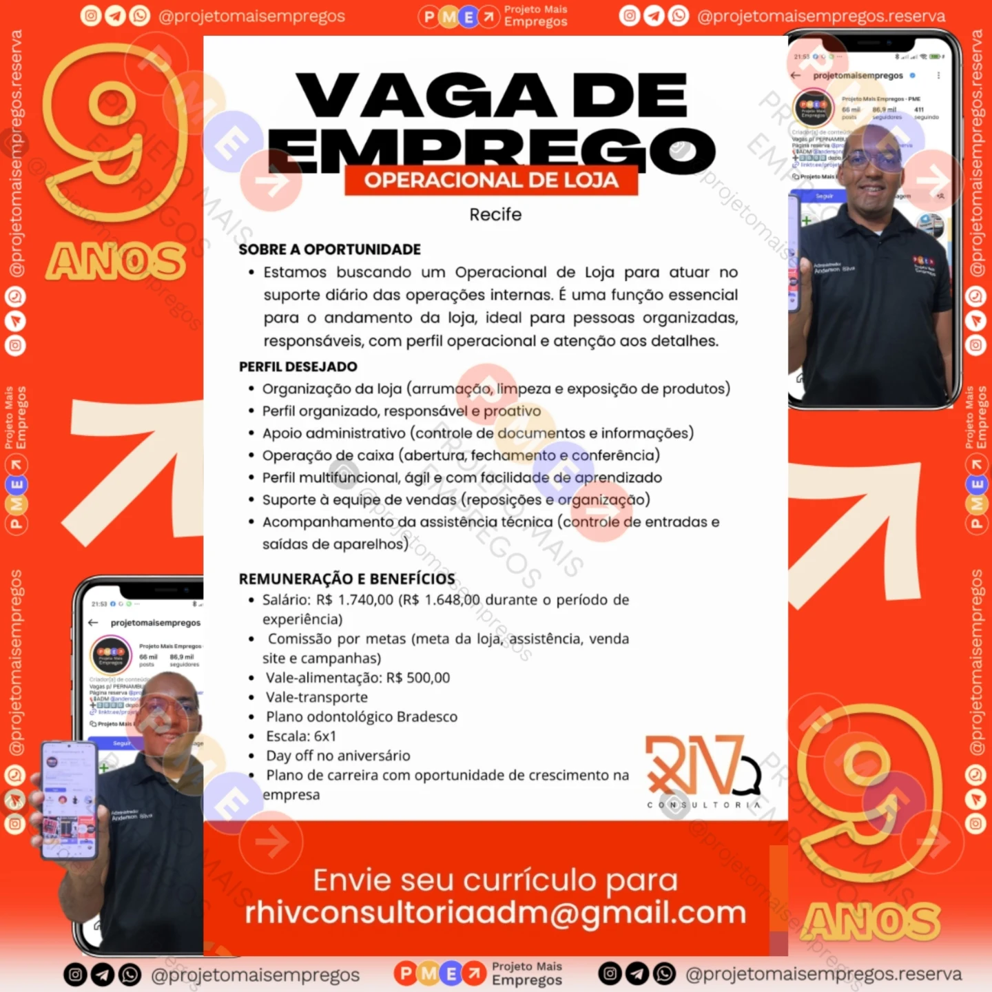 As informações sobre a vaga de emprego, como salário, remuneração, benefícios, requisitos, local de trabalho, forma de candidatura (e-mail ou whatsapp para enviar seu currículo) etc., estarão na imagem abaixo, caso estejam disponíveis.👇