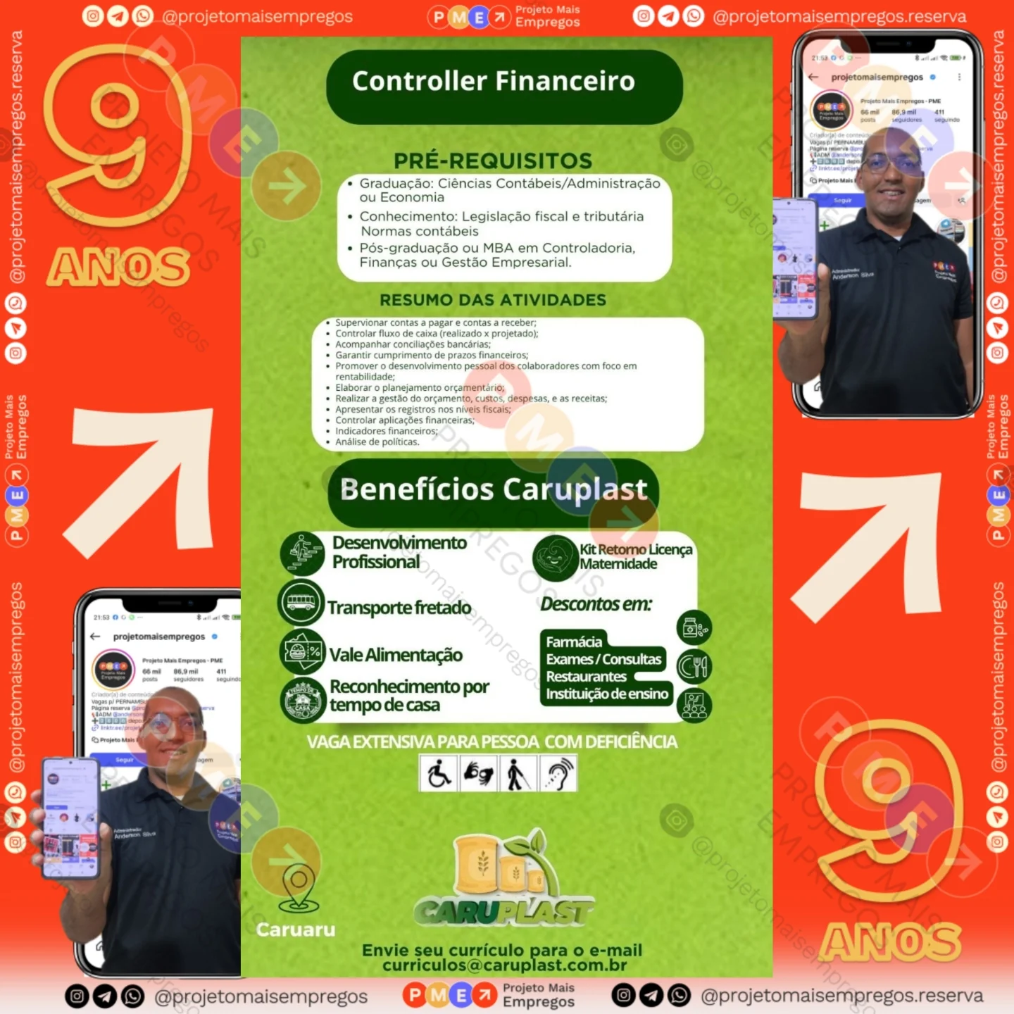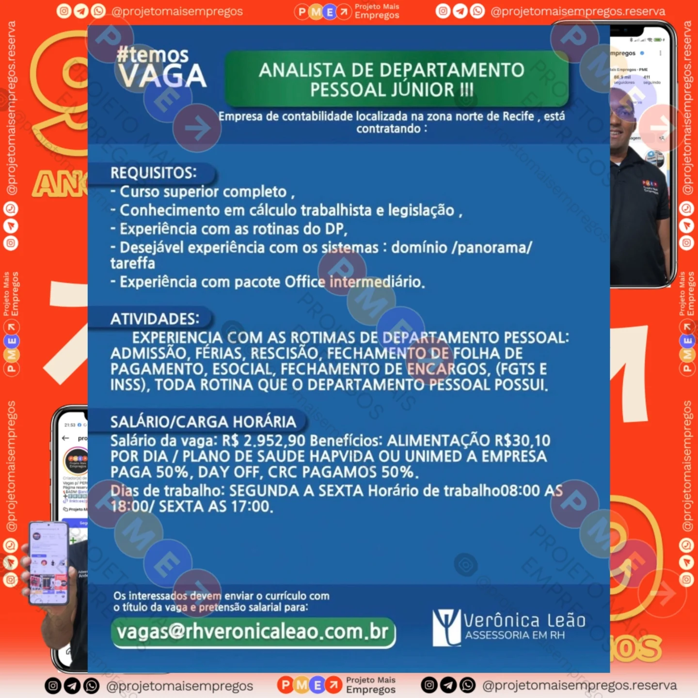 As informações sobre a vaga de emprego, como salário, remuneração, benefícios, requisitos, local de trabalho, forma de candidatura (e-mail ou whatsapp para enviar seu currículo) etc., estarão na imagem acima, caso estejam disponíveis.