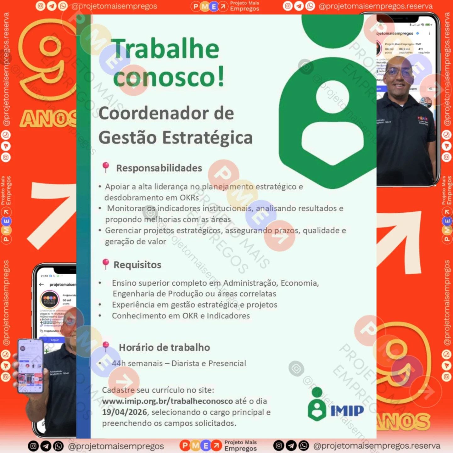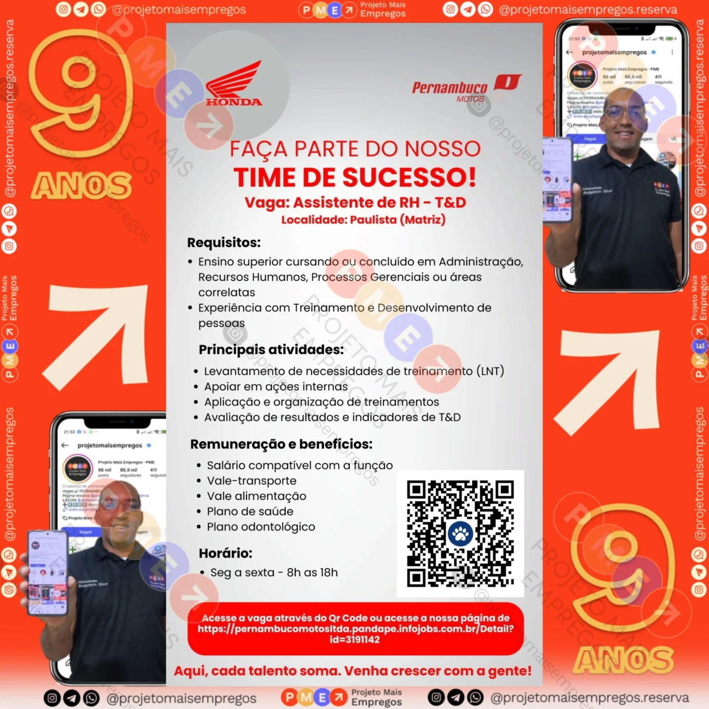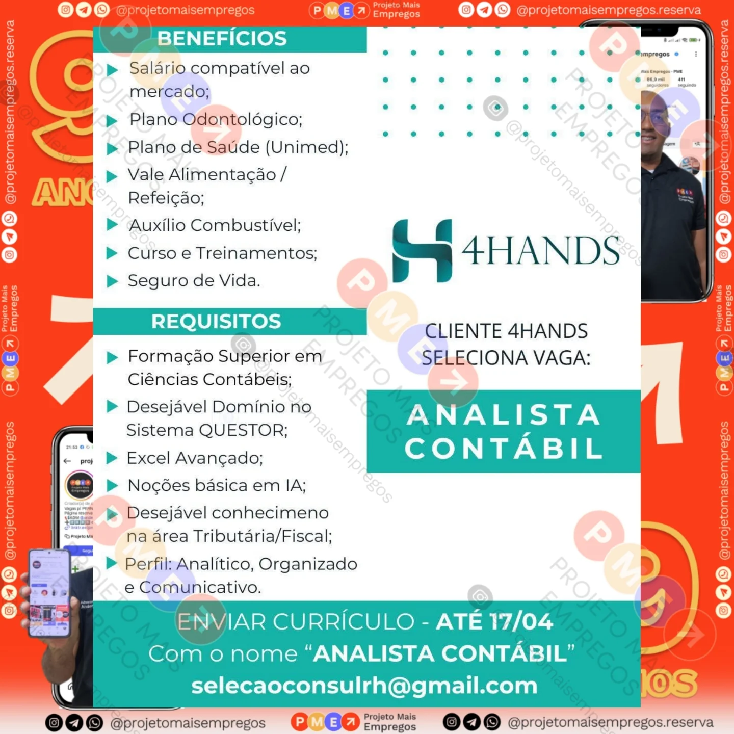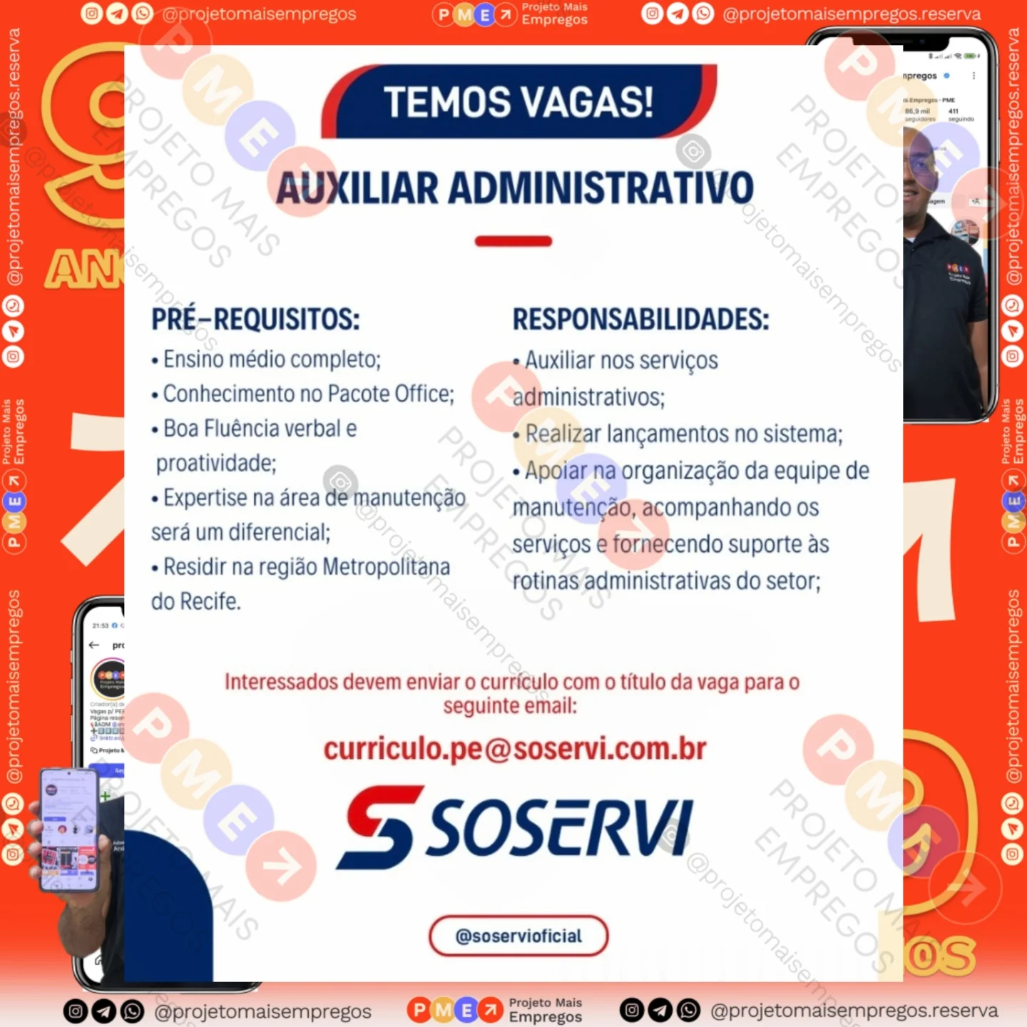 As informações sobre a vaga de emprego, como salário, remuneração, benefícios, requisitos, local de trabalho, forma de candidatura (e-mail ou whatsapp para enviar seu currículo) etc., estarão na imagem acima, caso estejam disponíveis.