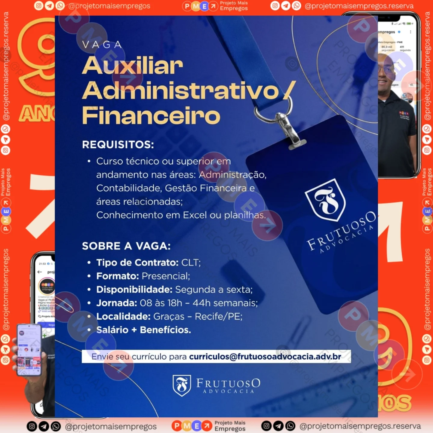 As informações sobre a vaga de emprego, como salário, remuneração, benefícios, requisitos, local de trabalho, forma de candidatura (e-mail ou whatsapp para enviar seu currículo) etc., estarão na imagem abaixo, caso estejam disponíveis.👇