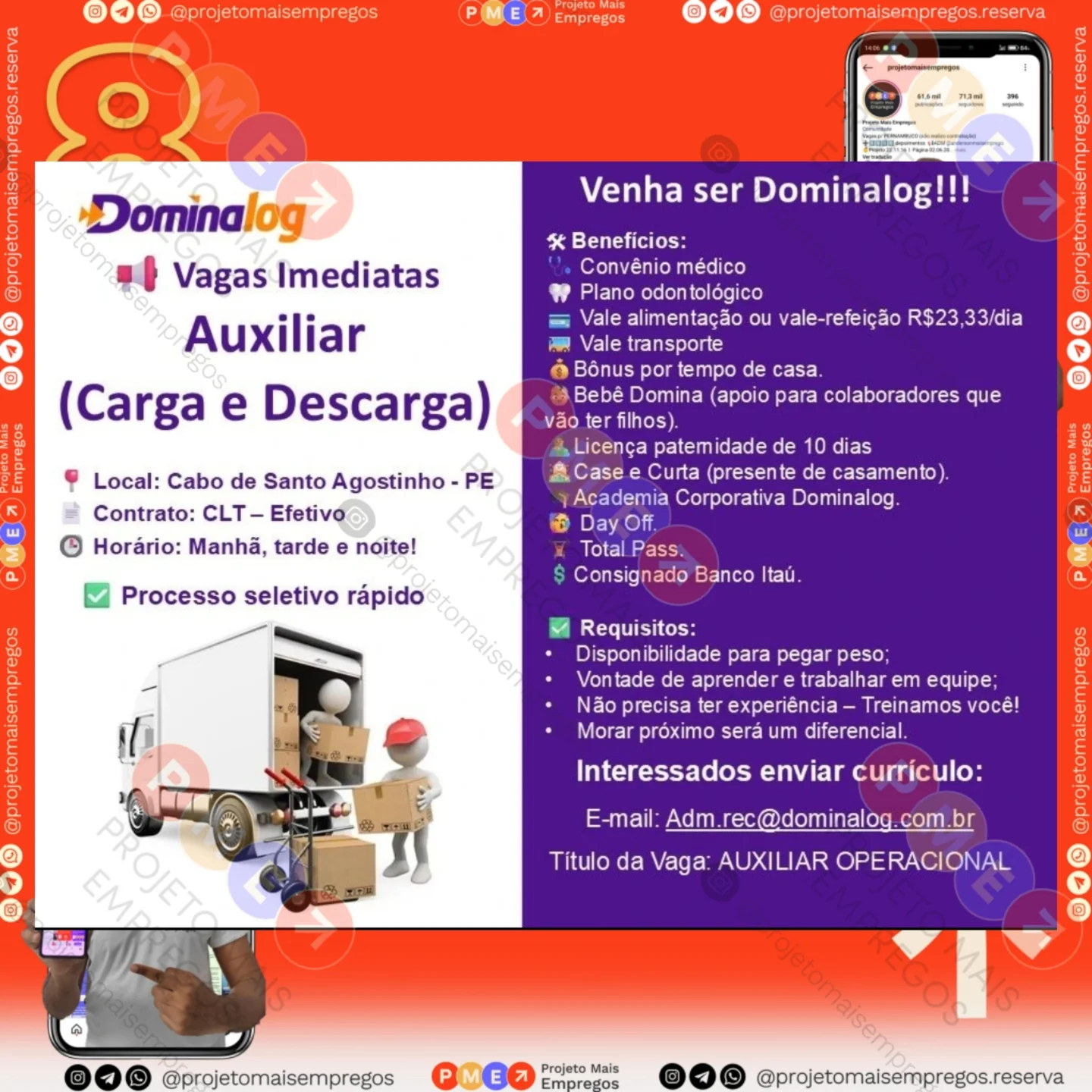 Benefícios: AUXILIAR DE LOGÍSTICA: convênios, descontos, plano odontológico, vale-alimentação, vale-transporte; AJUDANTE DE CARGA E DESCARGA: convênios, day off de aniversário, plano odontológico, vale-alimentação, vale-transporte; AUXILIAR / ASSISTENTE DE RH (RECURSOS HUMANOS): convênios, plano de saúde, plano odontológico, vale-alimentação, vale-transporte; CONFERENTE: convênios, vale-alimentação, vale-transporte; SUPERVISOR(A): descontos, licença-maternidade, vale-alimentação, vale-transporte; AUXILIAR DE PRODUÇÃO: descontos, vale-alimentação, vale-transporte; PORTEIRO(A) / ZELADOR: adicional de periculosidade, vale-alimentação, vale-transporte