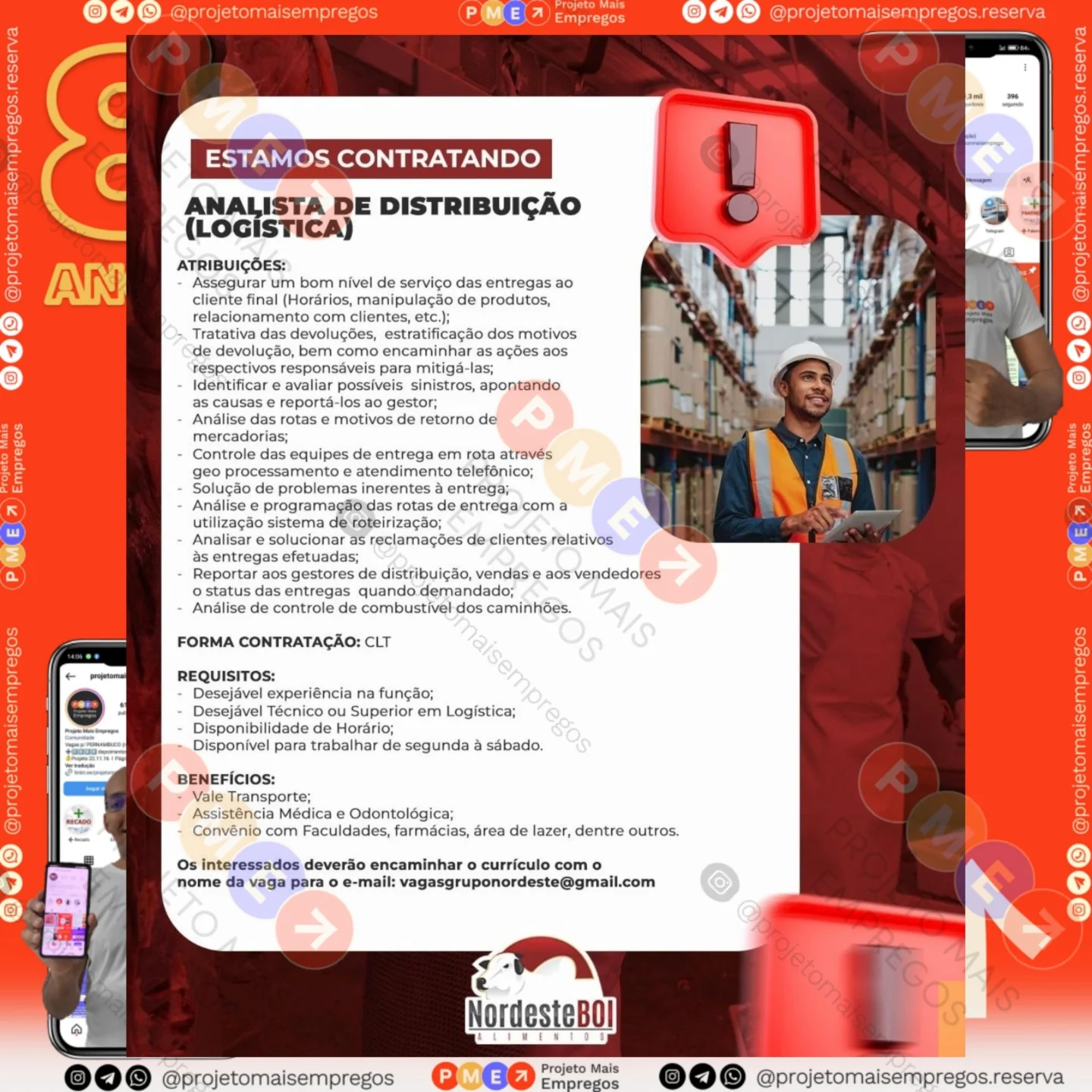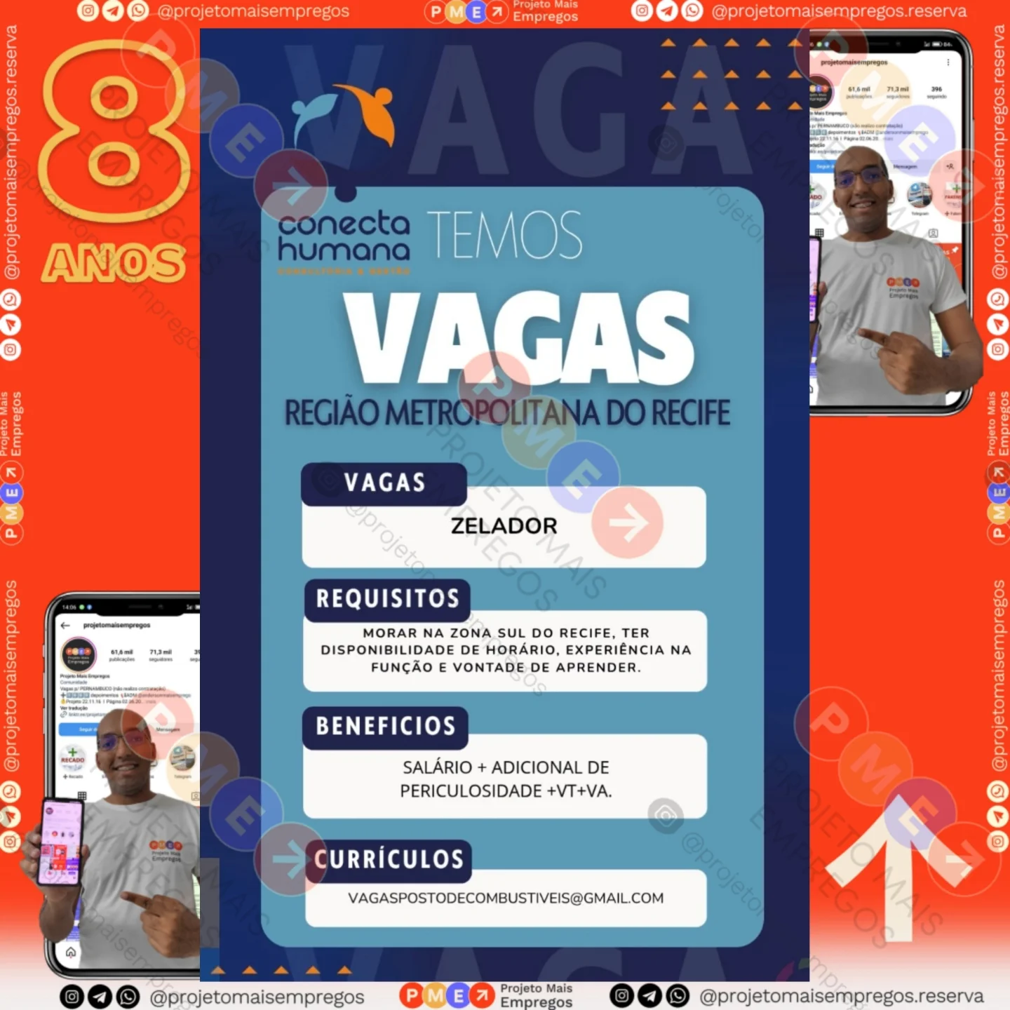 As informações sobre a vaga de emprego, como salário, remuneração, benefícios, requisitos, local de trabalho, forma de candidatura (e-mail ou whatsapp para enviar seu currículo) etc., estarão na imagem acima, caso estejam disponíveis.