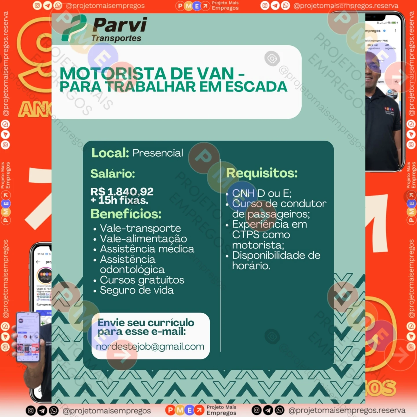 As informações sobre a vaga de emprego, como salário, remuneração, benefícios, requisitos, local de trabalho, forma de candidatura (e-mail ou whatsapp para enviar seu currículo) etc., estarão na imagem acima, caso estejam disponíveis.
