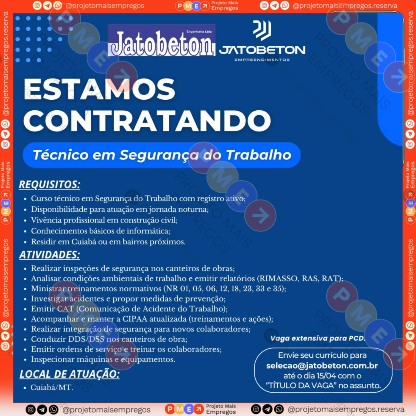 As informações sobre a vaga de emprego, como salário, remuneração, benefícios, requisitos, local de trabalho, forma de candidatura (e-mail ou whatsapp para enviar seu currículo) etc., estarão na imagem abaixo, caso estejam disponíveis.👇