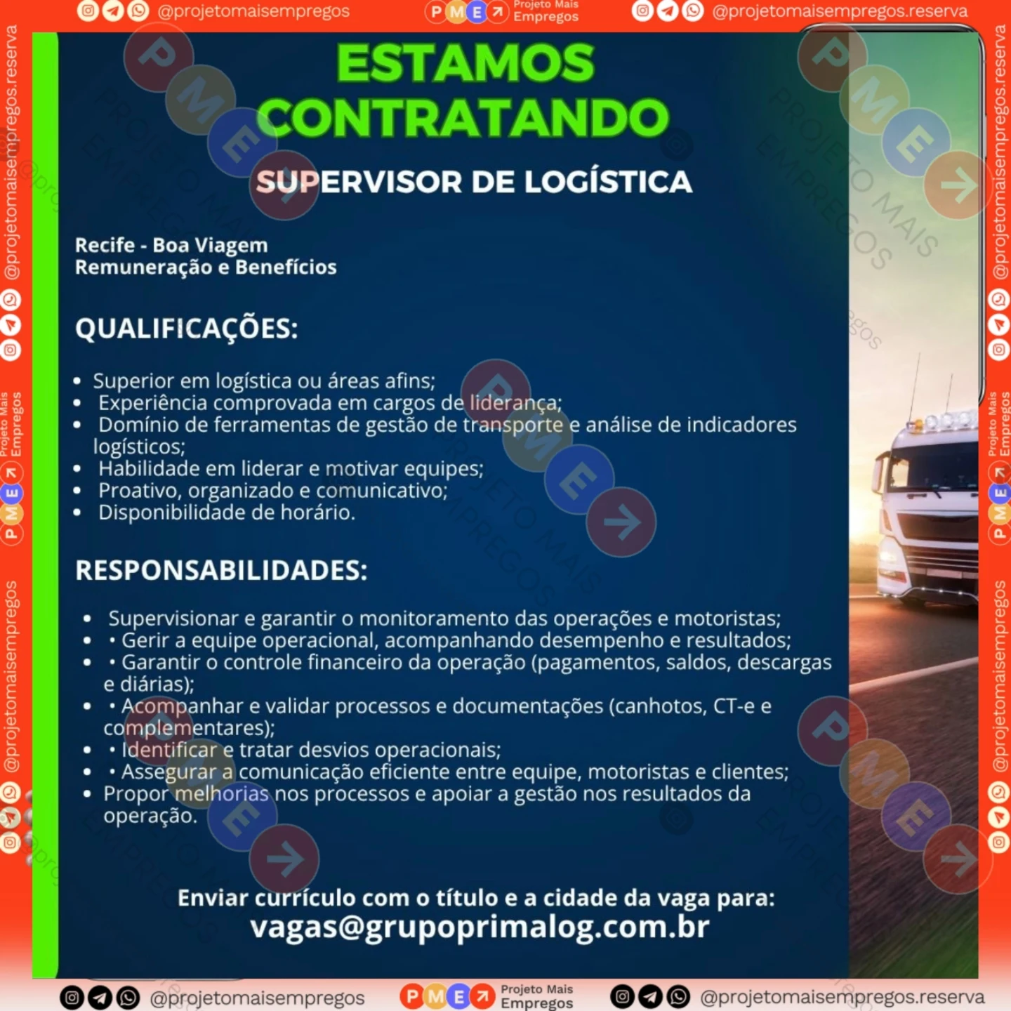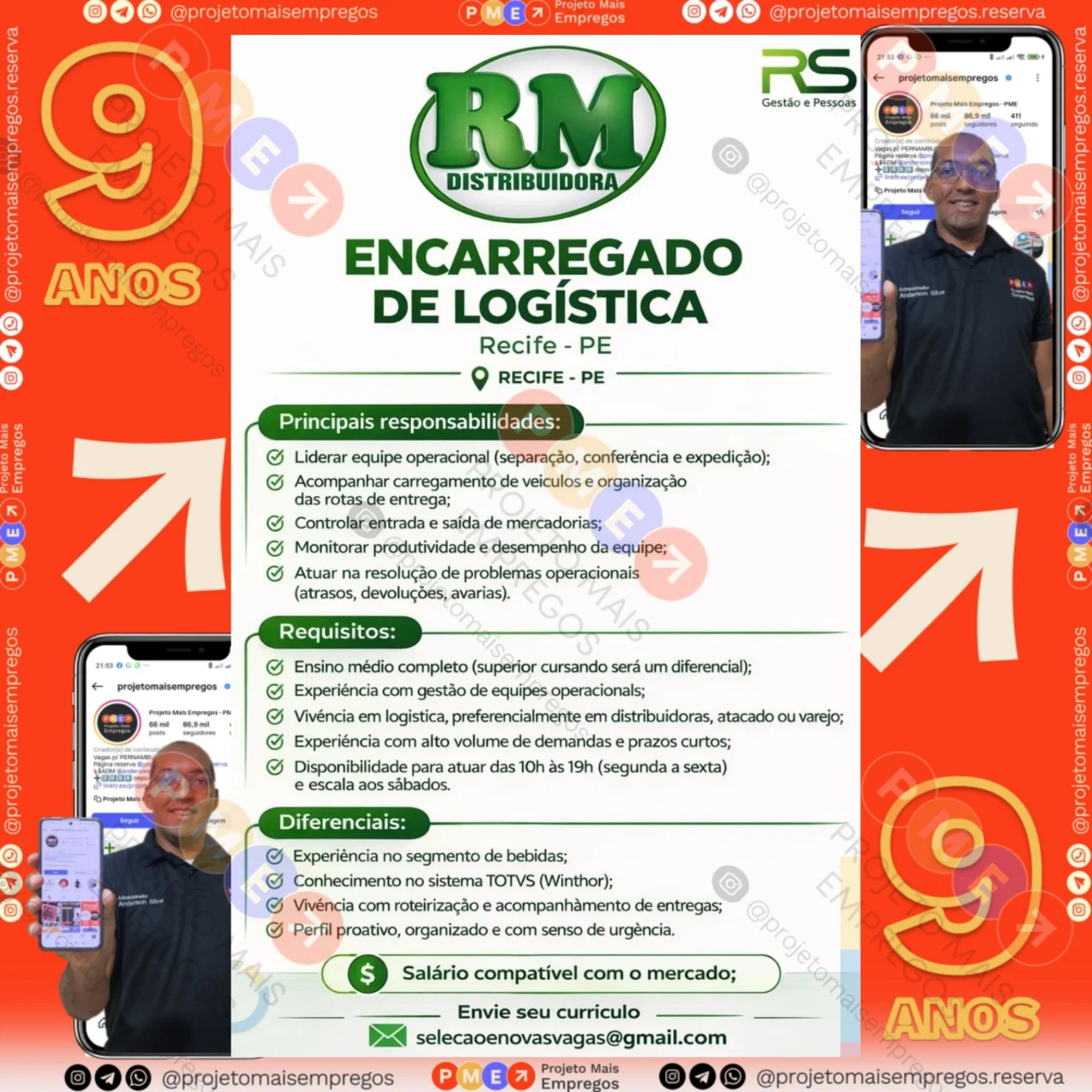 As informações sobre a vaga de emprego, como salário, remuneração, benefícios, requisitos, local de trabalho, forma de candidatura (e-mail ou whatsapp para enviar seu currículo) etc., estarão na imagem acima, caso estejam disponíveis.